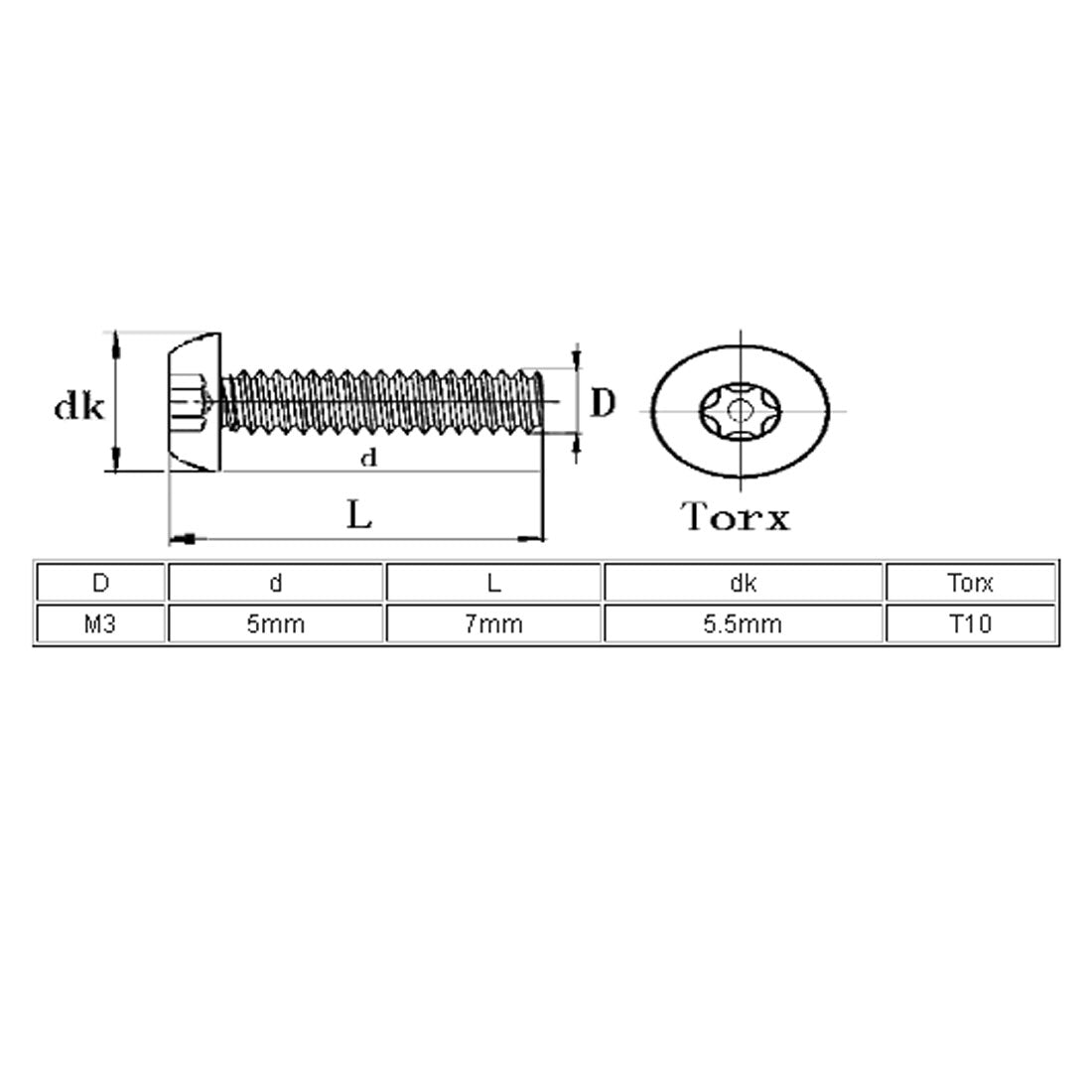 Harfington M3x5mm 304 Stainless Steel Button Head Torx Security Machine Screws 20pcs