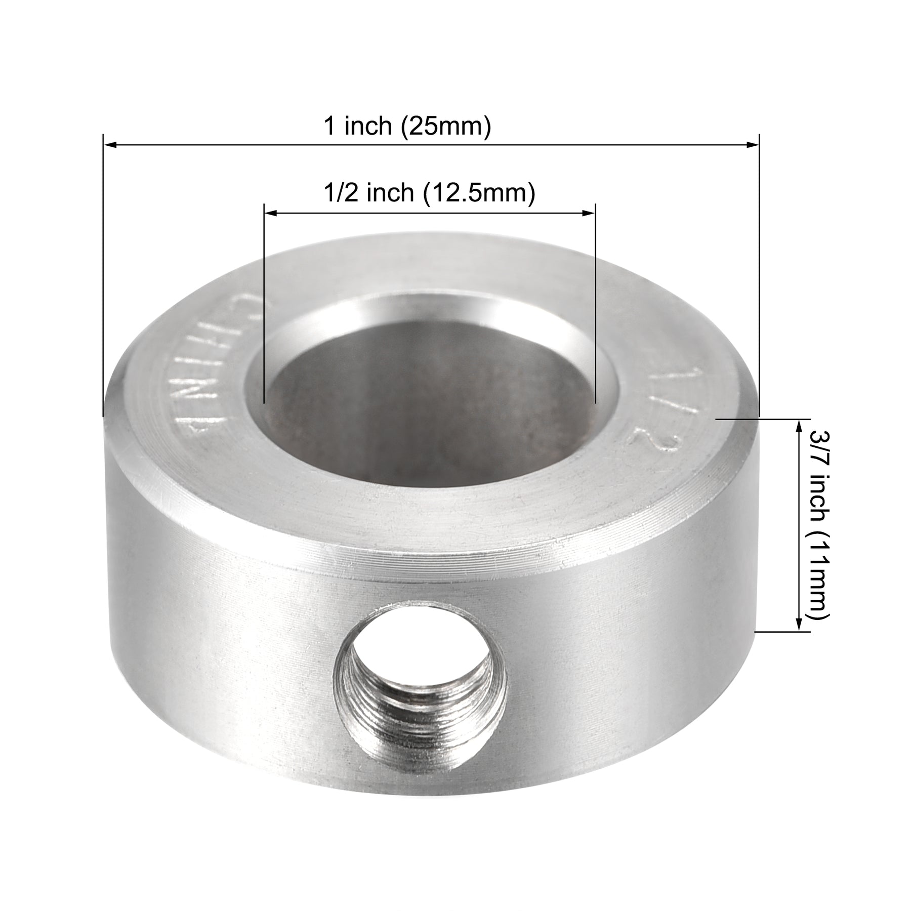 Specifications: Product Name: Drill Bit Stop Material: Stainless Steel Locking Screw: M6 Thickness: 3/7 inch (11mm) Internal Diameter: 1/2 inch (12.5mm) External Diameter: 1 inch (25mm)