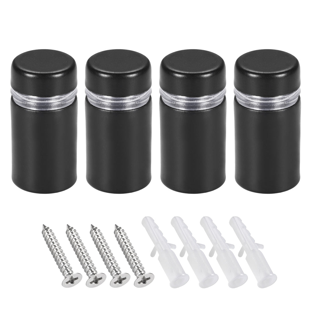 Specification: Total Size: 12 x 23mm / 0.47 x 0.91"(D*L) Thread Size: 7.8 x 14mm / 0.31 x 0.55"(D*L) For Max Panel Thickness: 6mm / 0.24" Screw Nail Cap Thickness: 5mm / 0.2" Elevates signage Height: 15mm / 0.59" Material: Stainless Steel Color: Black Package Include: 4 Pack x Standoff with rubber spacer, Screw Mounting Accessories