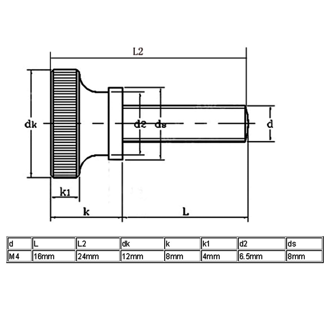 M4x16mm Flat Knurled Head Fully Threaded Thumb Screws Bolts Fastener 15pcs