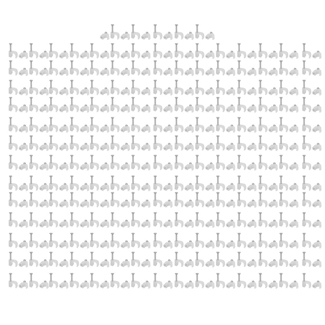 Steel Nail PE Plastic Clip Clamp White. Inserting type, nail attached in clips, save time. Easy installation, Put the cable under the clip and hammer the nail into the wall to secure the cable. Can install the round cables to the wall or the floorboard for a clean look and prevent tripping over loose cable. Strong and solid, perfect for securing wire to walls, door frames and skirting boards.