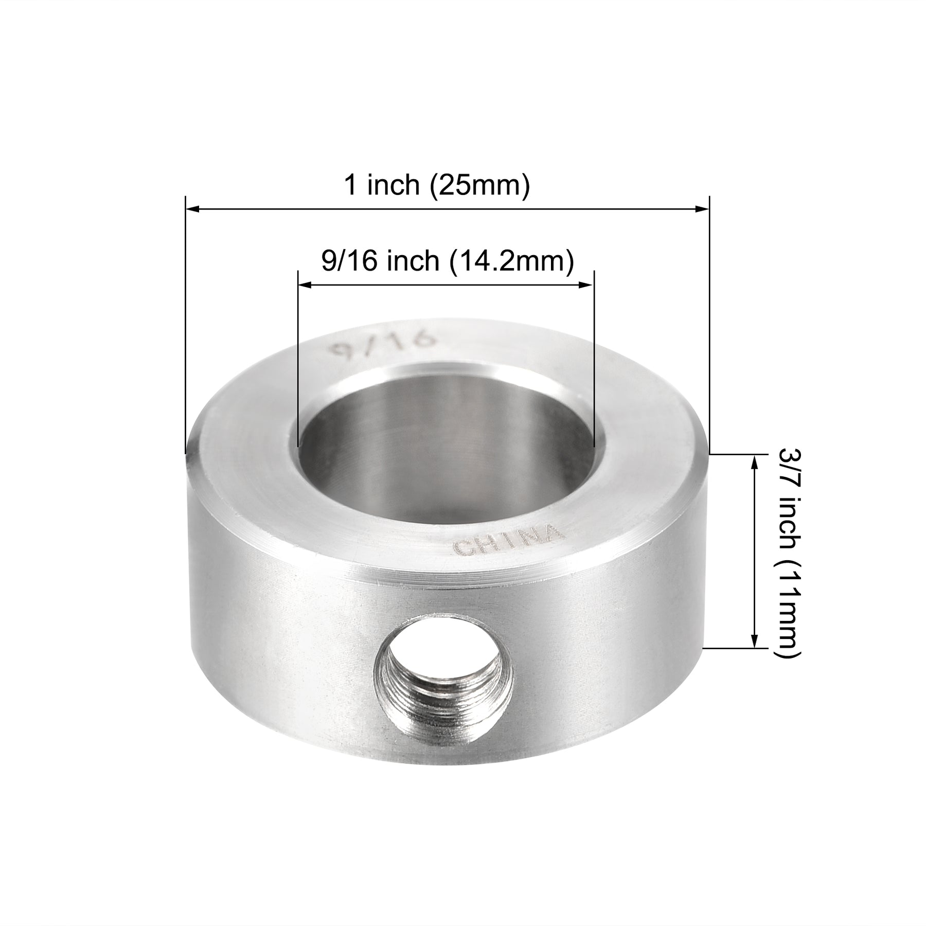 Specifications: Product Name: Drill Bit Stop Material: Stainless Steel Locking Screw: M6 Thickness: 3/7 inch (11mm) Internal Diameter: 9/16 inch (14.2mm) External Diameter: 1 inch (25mm)