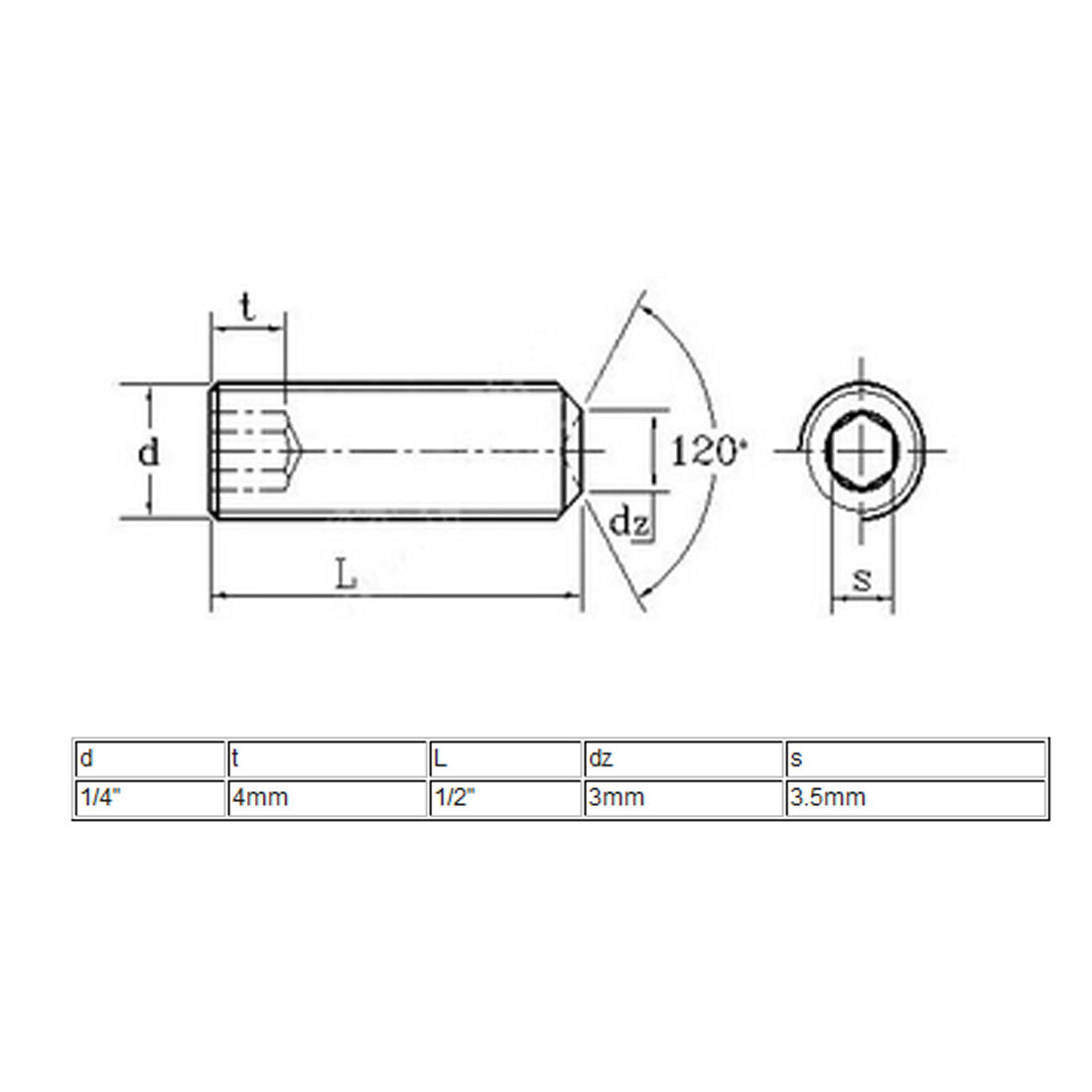 1/4"-20 x 1/2" Thread Hex Socket Set Cup Point Head Grub Screws Black 50 Pcs