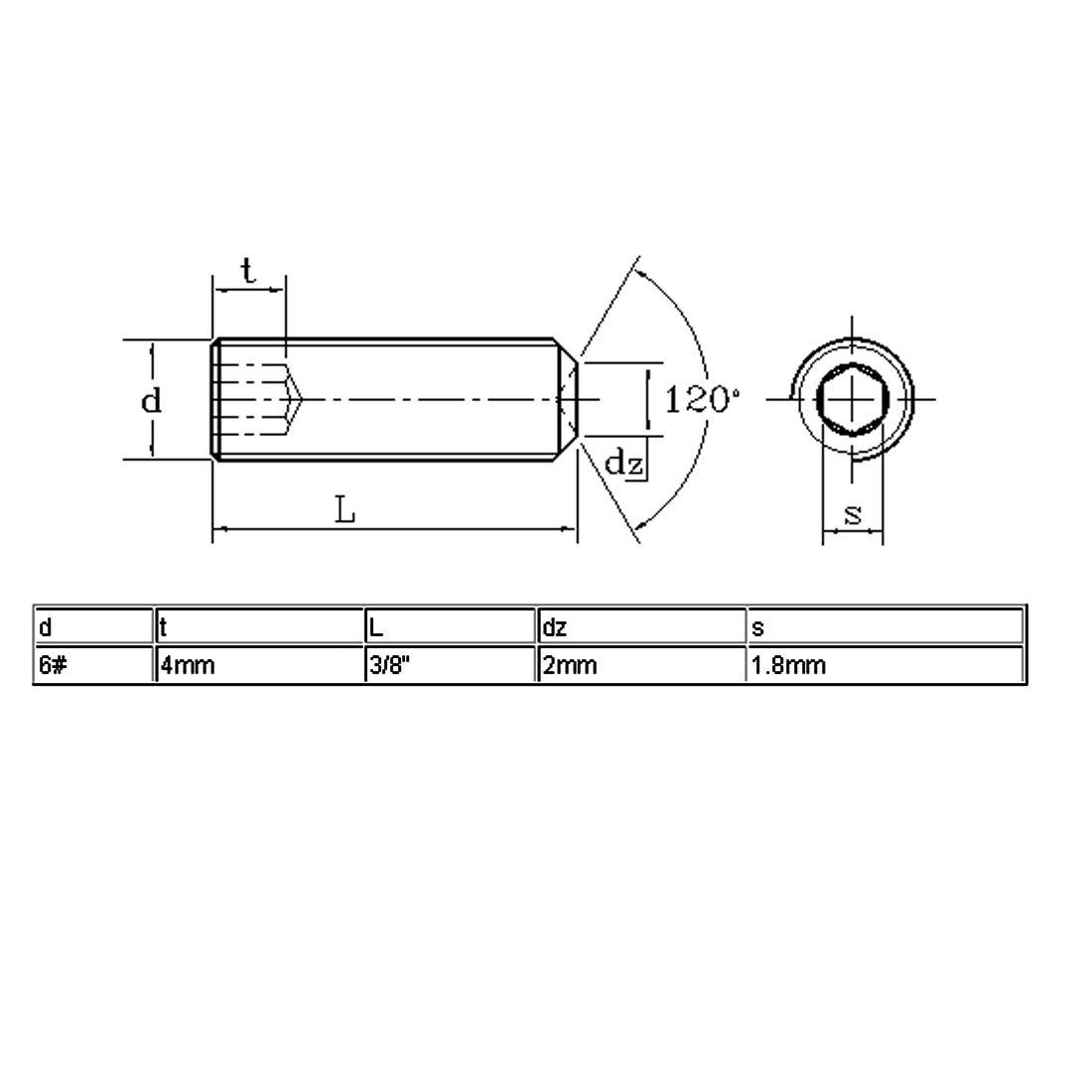 6#-32 x 3/8" Thread Cup Point Head Hexagon Socket Set Grub Screw Black 50 Pcs