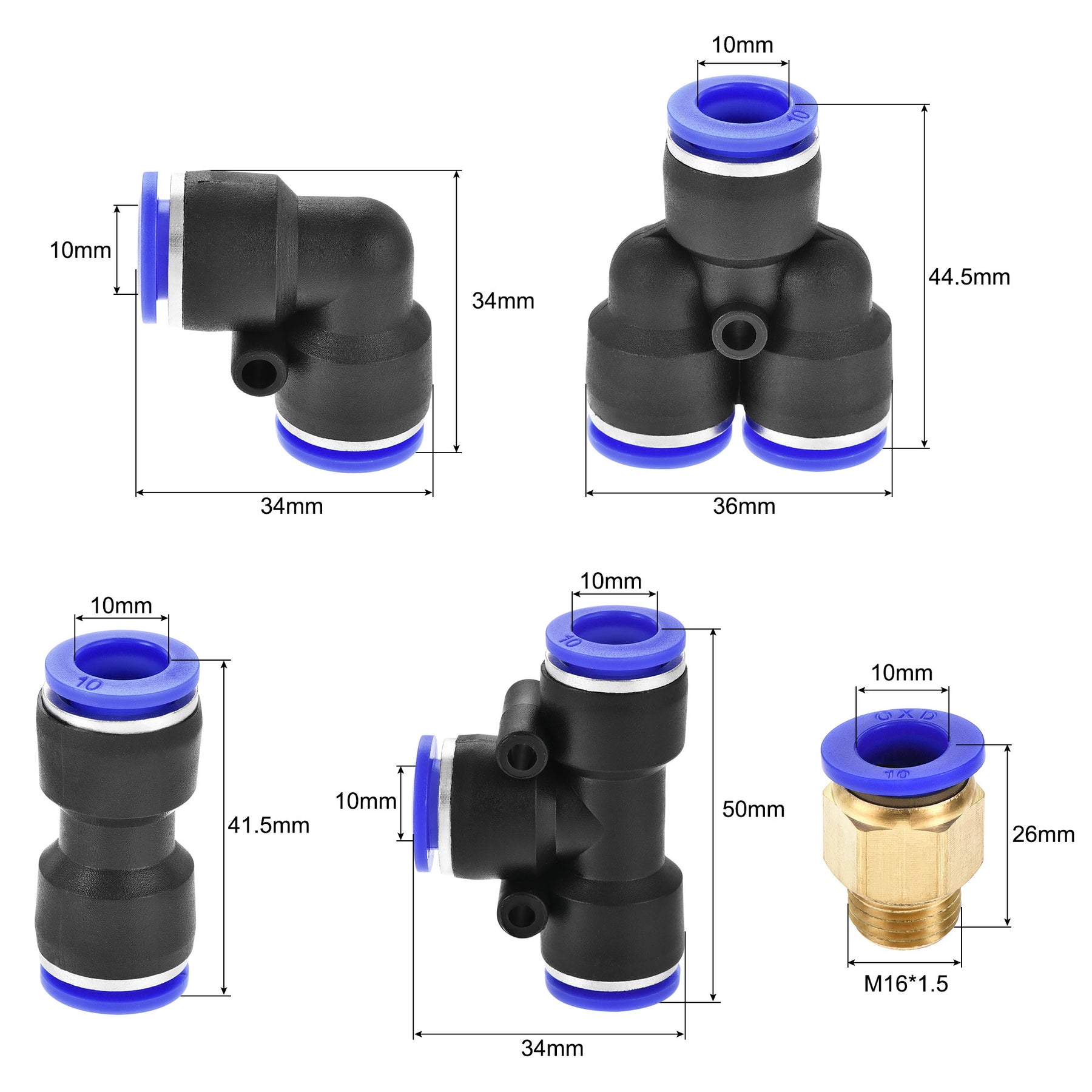 Package Content: 1 x PU Air Hose 4pcs x 10mm to M16*1.5 Male Connector 2pcs x 10mm Elbow Connector 2pcs x 10mm Y Connector 2pcs x 10mm T Connector 2pcs x 10mm Straight Connector