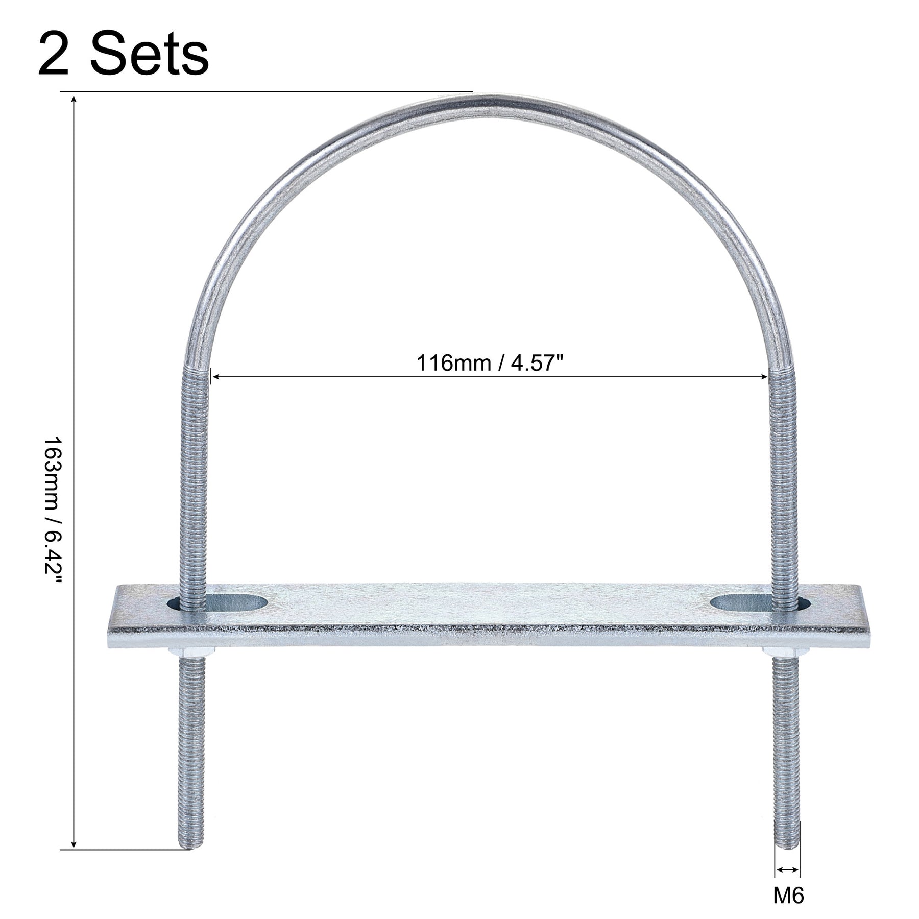 Specification: Product Name: U-Bolt Material: Steel Surface Treatment: Galvanized Main Color: Silver Tone Thread Dia.: M6 Fit Rod Size: 116mm / 4.57" Rod Diameter: 5.2mm / 0.2" Total Length: 163mm / 6.42" Hex Nut Size: 10 x 5mm / 0.39" x 0.2"(Hex Width*H) Frame Plate Size: 160 x 30 x 5mm / 6.3" x 1.18" x 0.2"(L*W*T) Round Washers Size: 22 x 6 x 1.5mm / 0.87" x 0.24" x 0.06"(OD*ID*T)