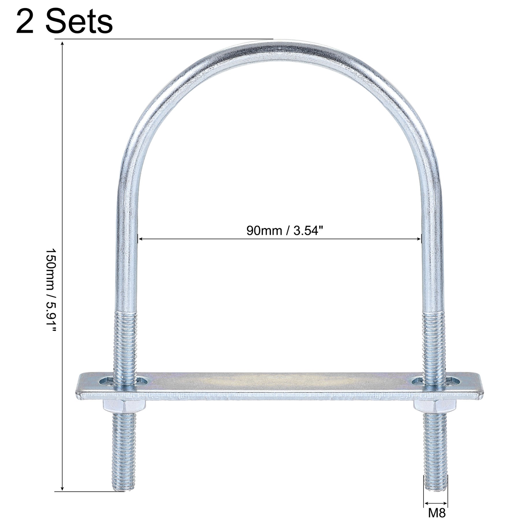 Specification: Product Name: U-Bolt Material: Steel Surface Treatment: Galvanized Main Color: Silver Tone Thread Dia.: M8 Fit Rod Size: 90mm / 3.54" Rod Diameter: 7mm / 0.28" Total Length: 150mm / 5.91" Hex Nut Size: 14 x 6mm / 0.55" x 0.24"(Hex Width*H) Frame Plate Size: 130 x 25 x 3mm / 5.12" x 0.98" x 0.12"(L*W*T)
