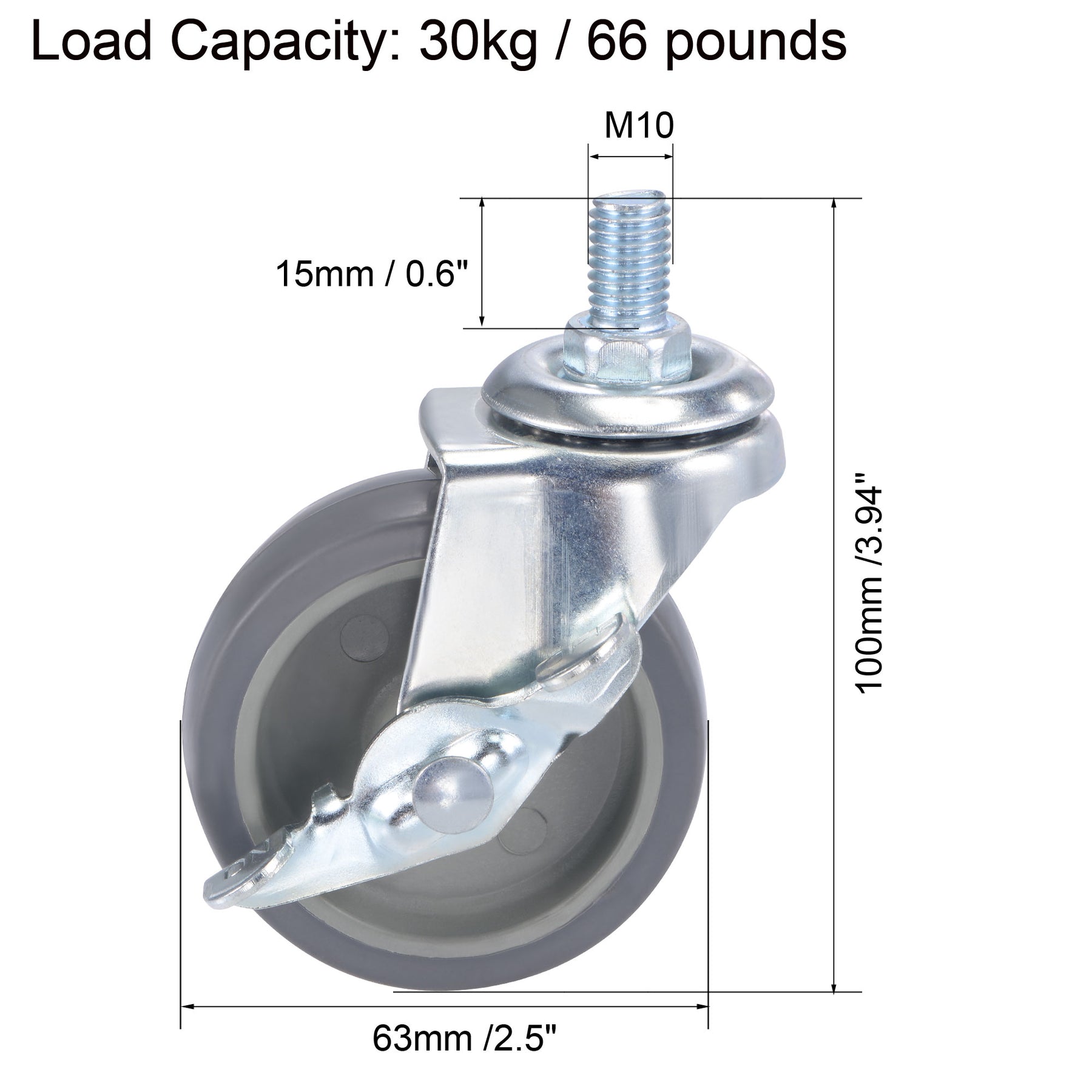 Features: TPE wheels allow them to roll smoothly with no marking and the full set of ball bearings feature a more flexible rotation The caster wheel can work on various surfaces like tile, concrete, and wood. Comes with a brake, you can keep your table in place by locking down it The caster wheel suits to use in a kitchen, bar, restaurant or any other commercial environment. A table or basket with wheels can help you move things easily and save effort