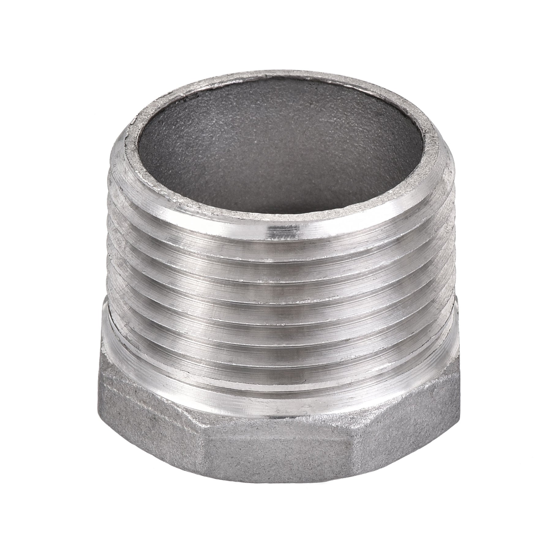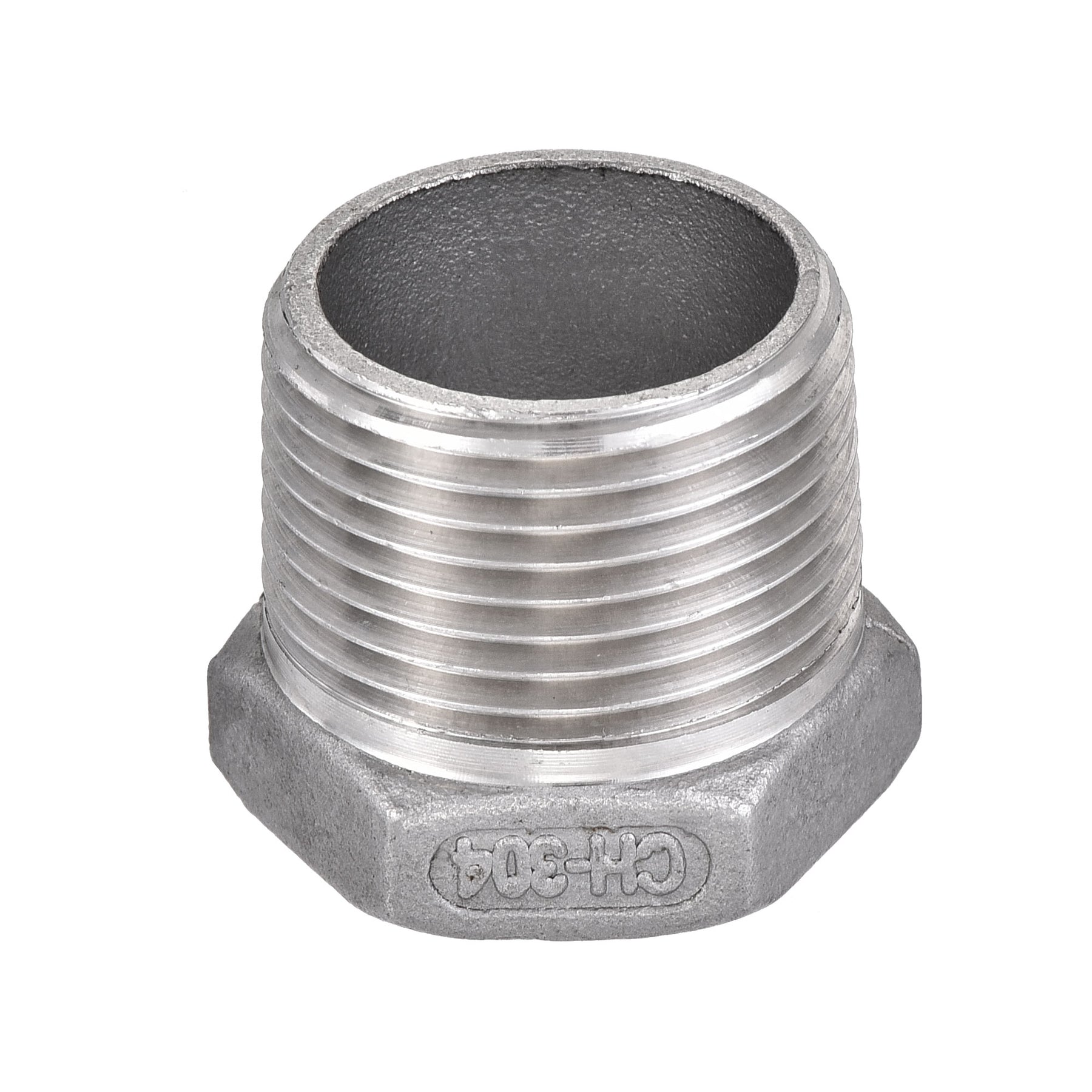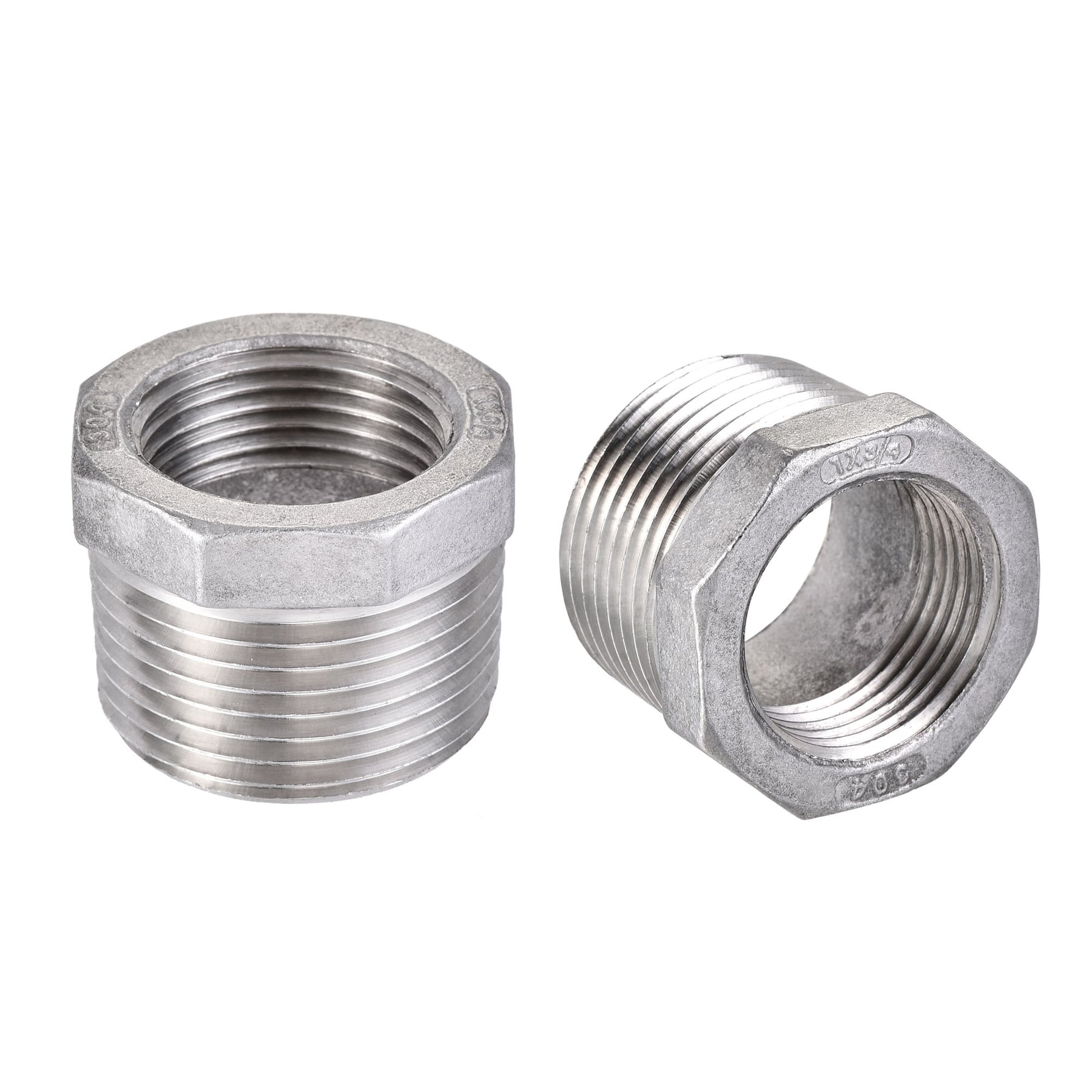Size:1/2NPT x 1/4NPT Size:3/4NPT x 1/2NPT Size:1NPT x 1/2NPT Features: Used to connect pipes of two different thread sizes, reducing the pipe size from a larger to a smaller bore. Made of corrosion and rust resistant 304 stainless steel, even in wet environment for a long time, it still performs well. The reducer bushing has a hexagonal head, be easily controlled by the wrench, save more time to improve work efficiency. Widely used to connect faucet, sprinkler, garden hose, water pipe, oil tube, valve meter, air line, fuel pipe, engine, pressure gauge temp sensor, etc.