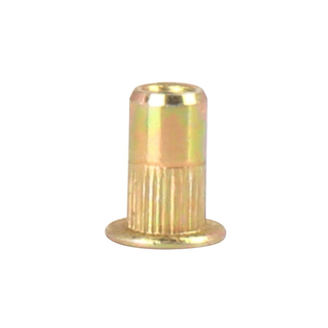 This rivet nut has a large flange to provide increased strength in punched and drilled holes.