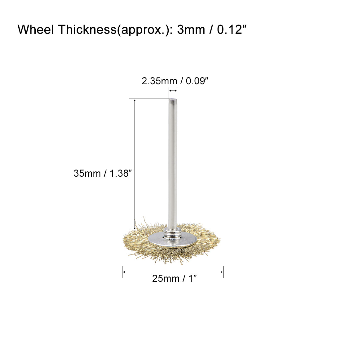 Harfington Mini Wire Cup Brush Brass Plated Crimped Steel 25 x 3mm with 2.35mm Shank 3 Pcs