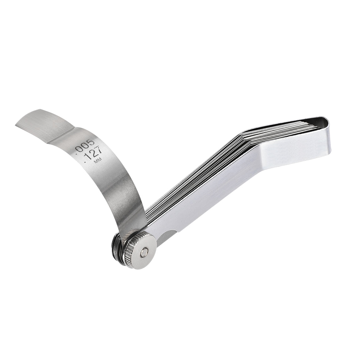 Feature: Each leaf has a laser etched size for easy identification. Foldable, easy and convenient to take and store. Suitable for designers, engineers, mechanics to measure the thickness of tappet clearances, spark plugs gaps, bearing clearances, piston ring gaps and other places.