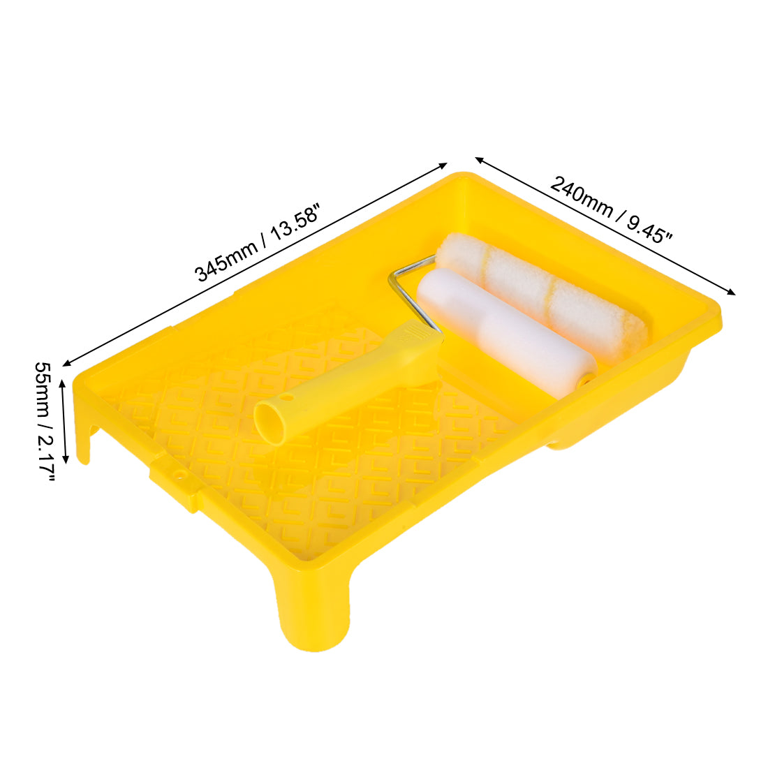 [Size]: Polyester Roller Size: 155x33mm / 6.1x1.3 inch (L*D); Handle Size: 135x33mm / 5.31x1.3 inch (L*D); Tray Size: 345x240x55mm / 13.58x9.45x2.17 inch (L*W*H).