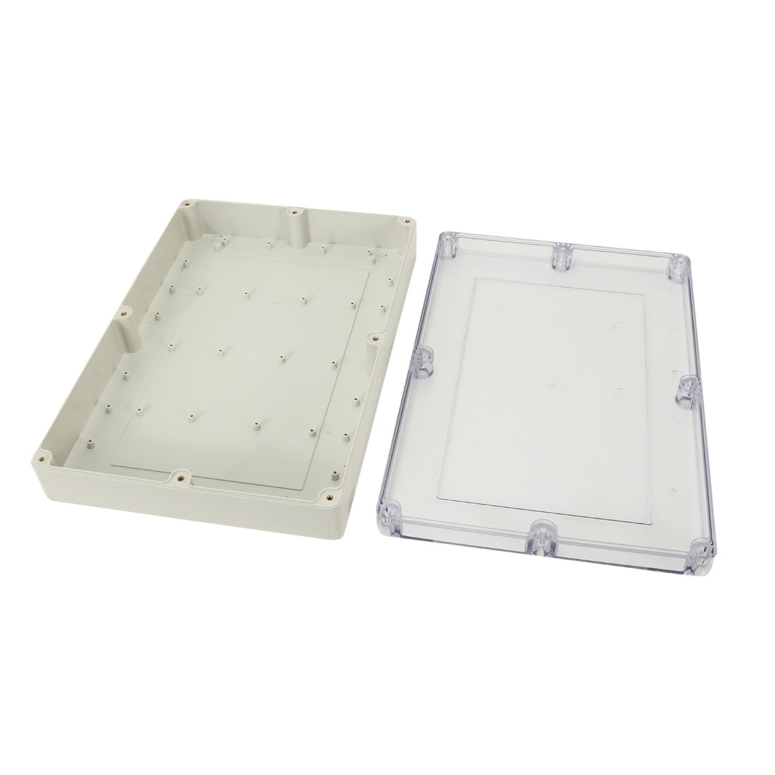 Specificatios:Product Name: Junction Box Outer Size: 15inchx10.2inchx3.35inch(380mmx260mmx85mm)(L*W*H) Inner Size(Approx.): 14.8inchx10inchx3.19inch(376mmx256mmx81mm)/(L*W*H) Main Color: Light Gray Main Material: ABS,Rubber Screw Thread Dia.: 4mm(0.16inch) Rating: IP65 Net Weight: 1158g