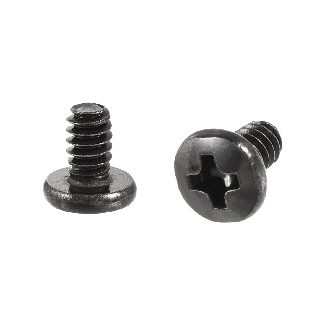 Specification: Material: Carbon Steel Finish: Carburization + Black Zinc Plated Screw Groove Type: Phillips Thread Diameter: #6 Thread Pitch : 32 Threads Per Inch Thread Length: 13/64"(5mm) Screw Head Diameter: 1/4"(6.5mm) Main Color : Black