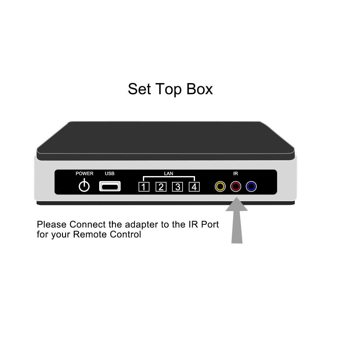 Note: 1.Please confirm whether the set-top box has an infrared interface and confirm the size of the infrared interface. 2.Be sure to mount the IR receiver with a straight line-of-sight to your remote. 3.The jack of our this cable is 2.5mm, it's only compatible with the 2.5mm IR jack. 4.How to know which size of your IR port: Usually, the port of your cell phone is 3.5mm, so you just could fit the earphone jack to confirm the size of your IR port. If the jack is smaller than your cell phone jack, then the port is 2.5mm, and our cable will fit for your IR extender.