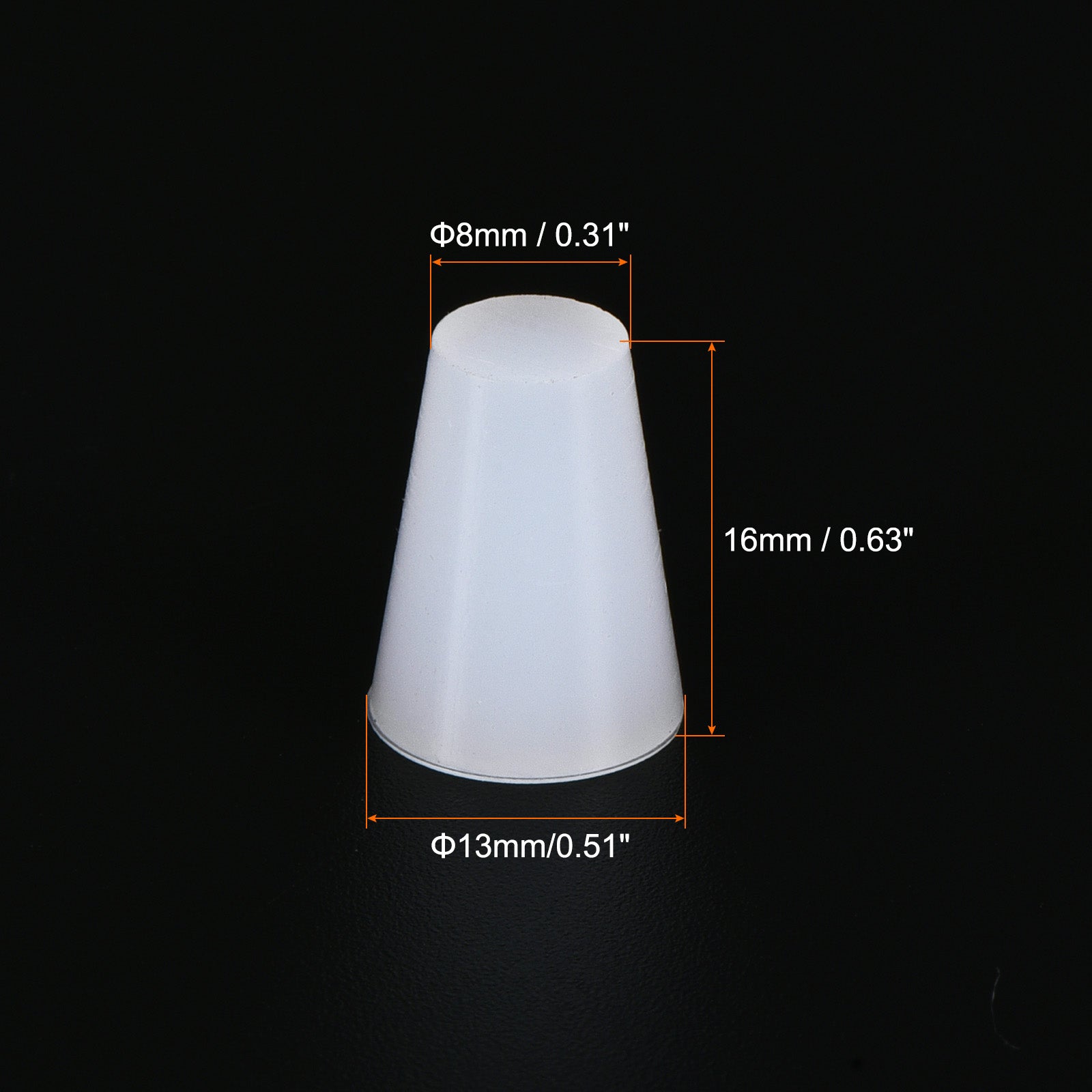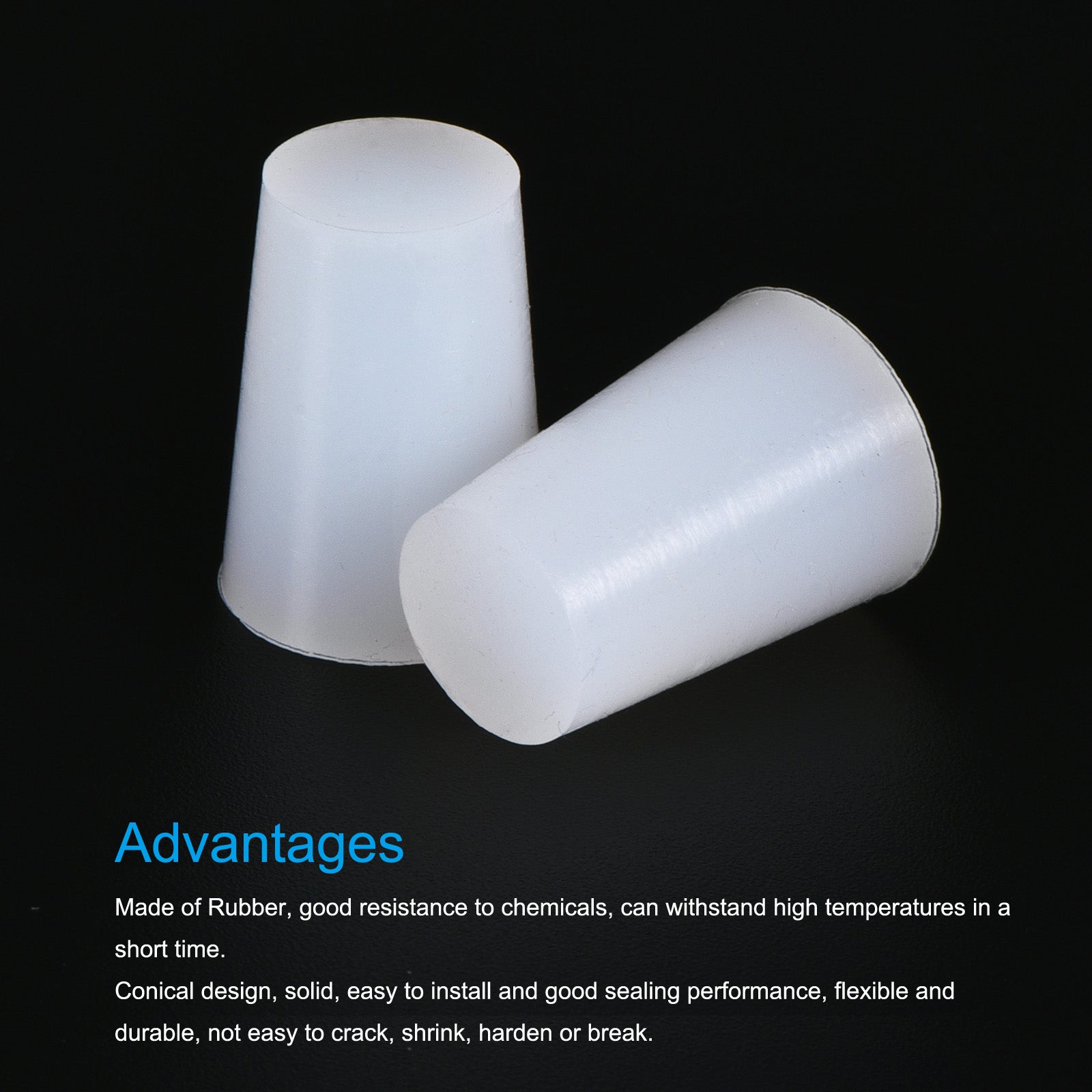 The tapered plug is in size of: Bottom Diameter: 25mm / 0.98"; Top Diameter: 33mm / 1.3"; Height: 27.5mm / 1.08"; In the package of: 10 x Silicone Rubber Tapered Plug
