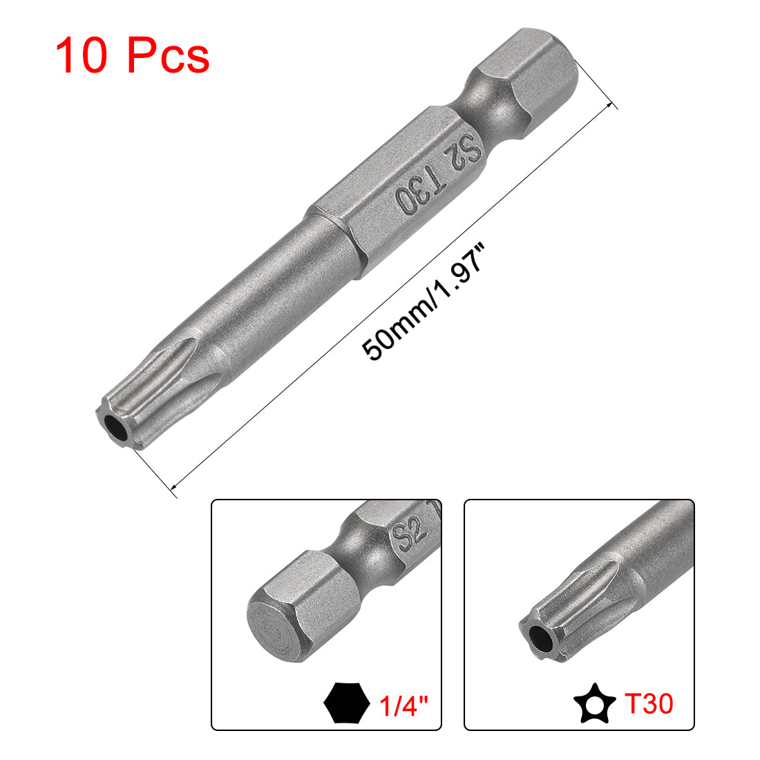 Alloy Steel 1/4" Hex Shank S2 Torx Screwdriver Bits