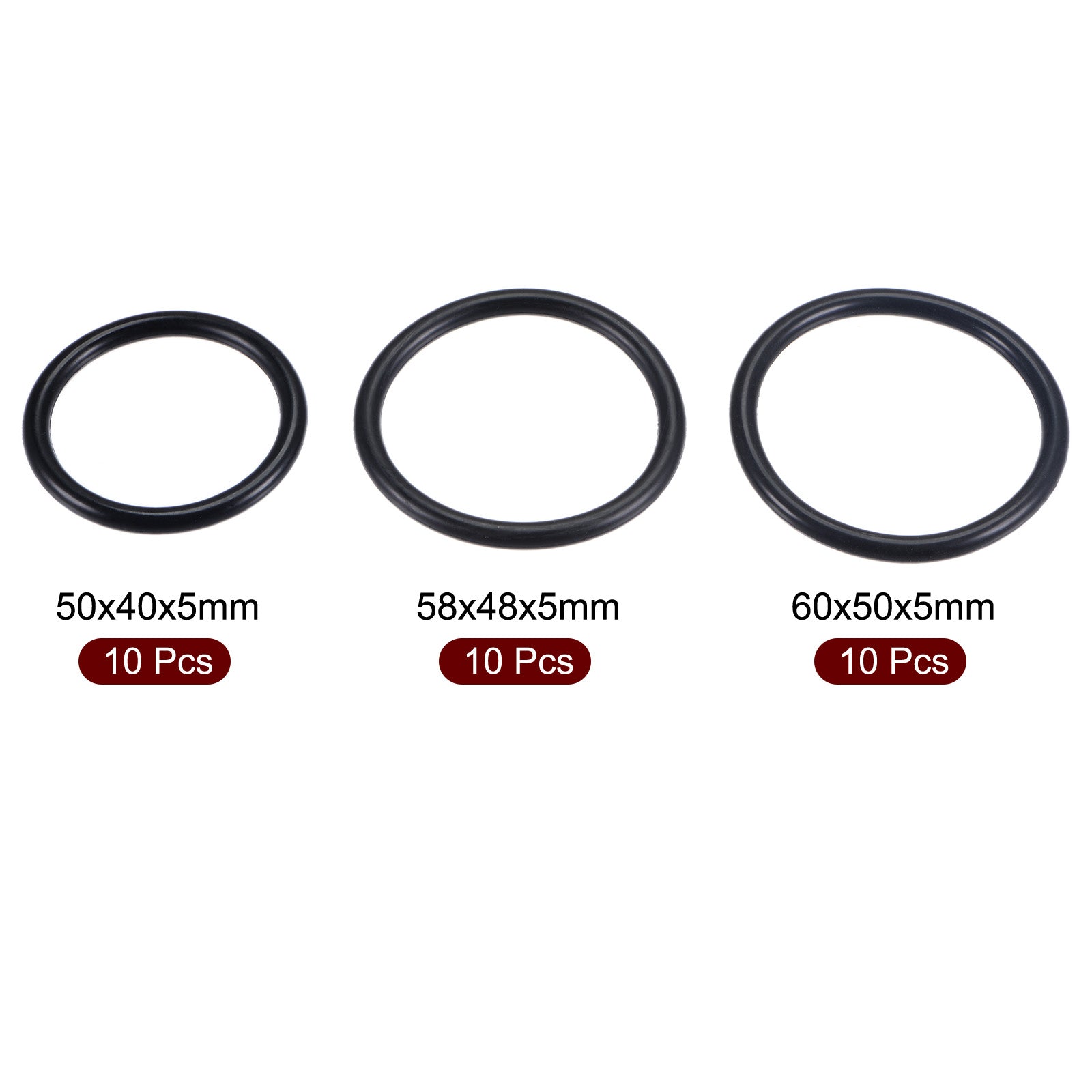 Material: Nitrile Butadiene Rubber; Hardness: 70A; Temperature Range: -4℉ (-20℃) to 212℉ (100℃); Package Contents: 50pcs x 5x2x1.5mm O-Rings, 50pcs x 5.5x2.5x1.5mm O-Rings, 50pcs x 6.5x3.5x1.5mm O-Rings