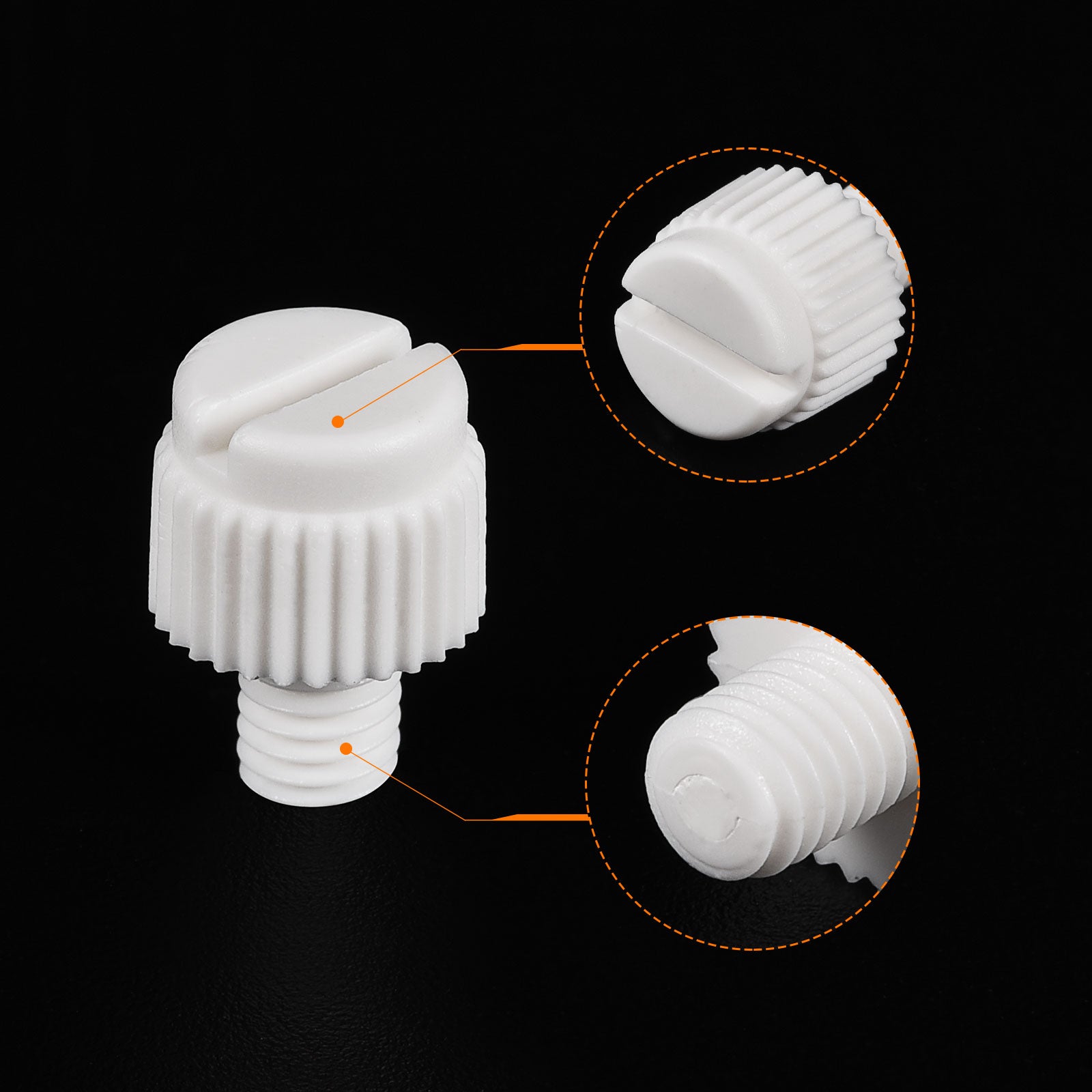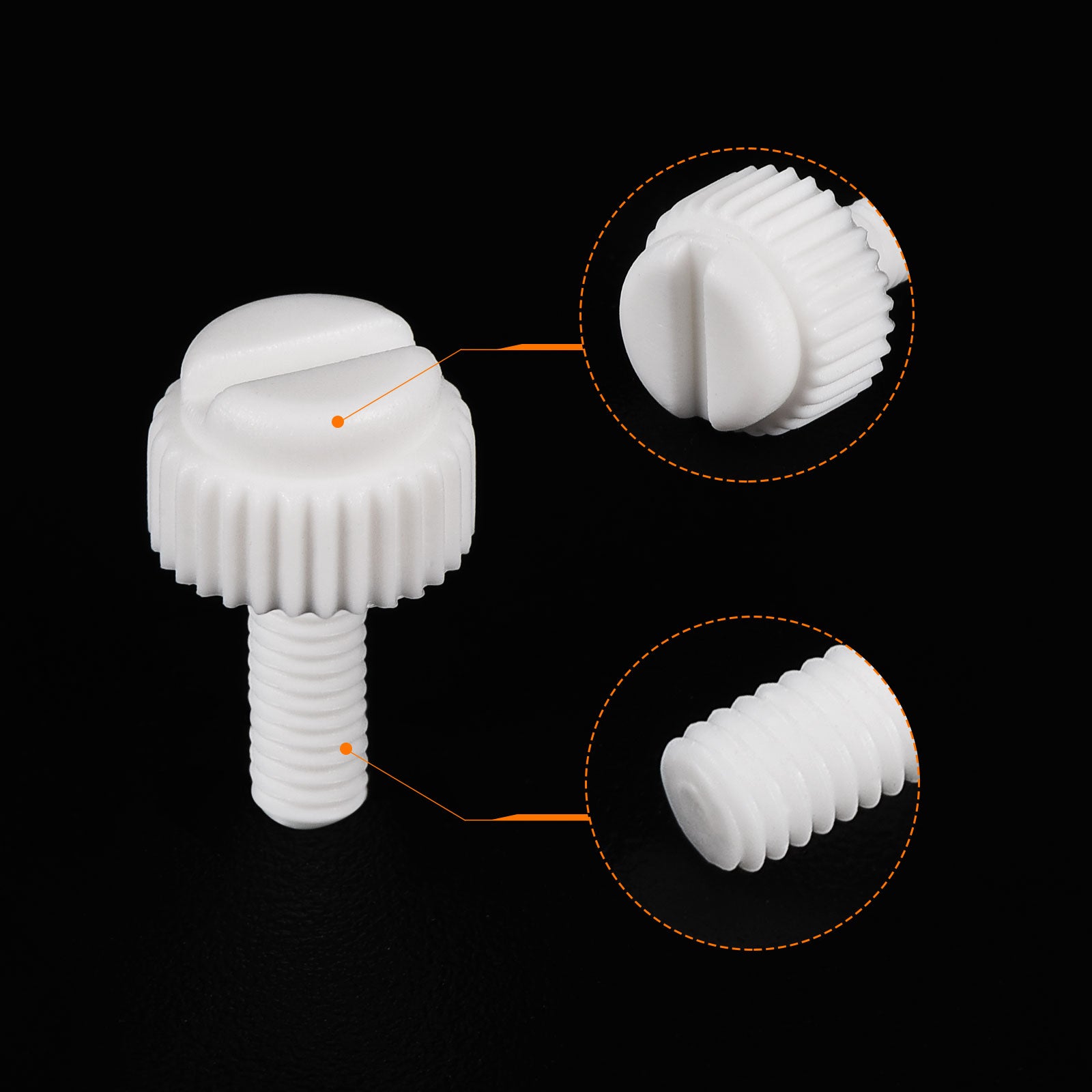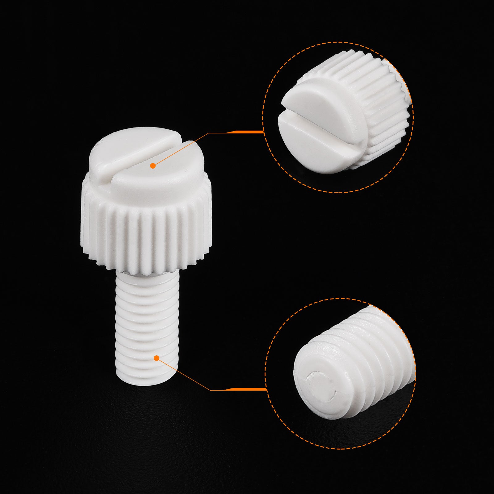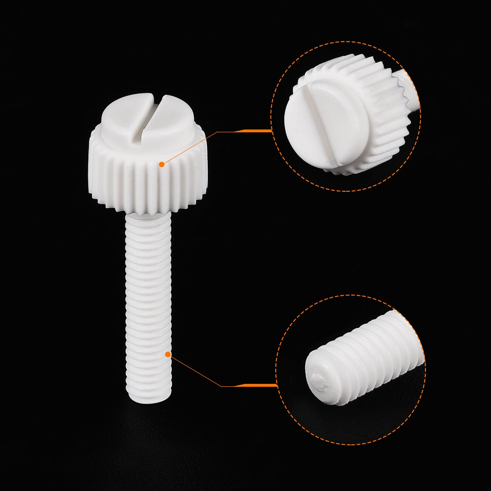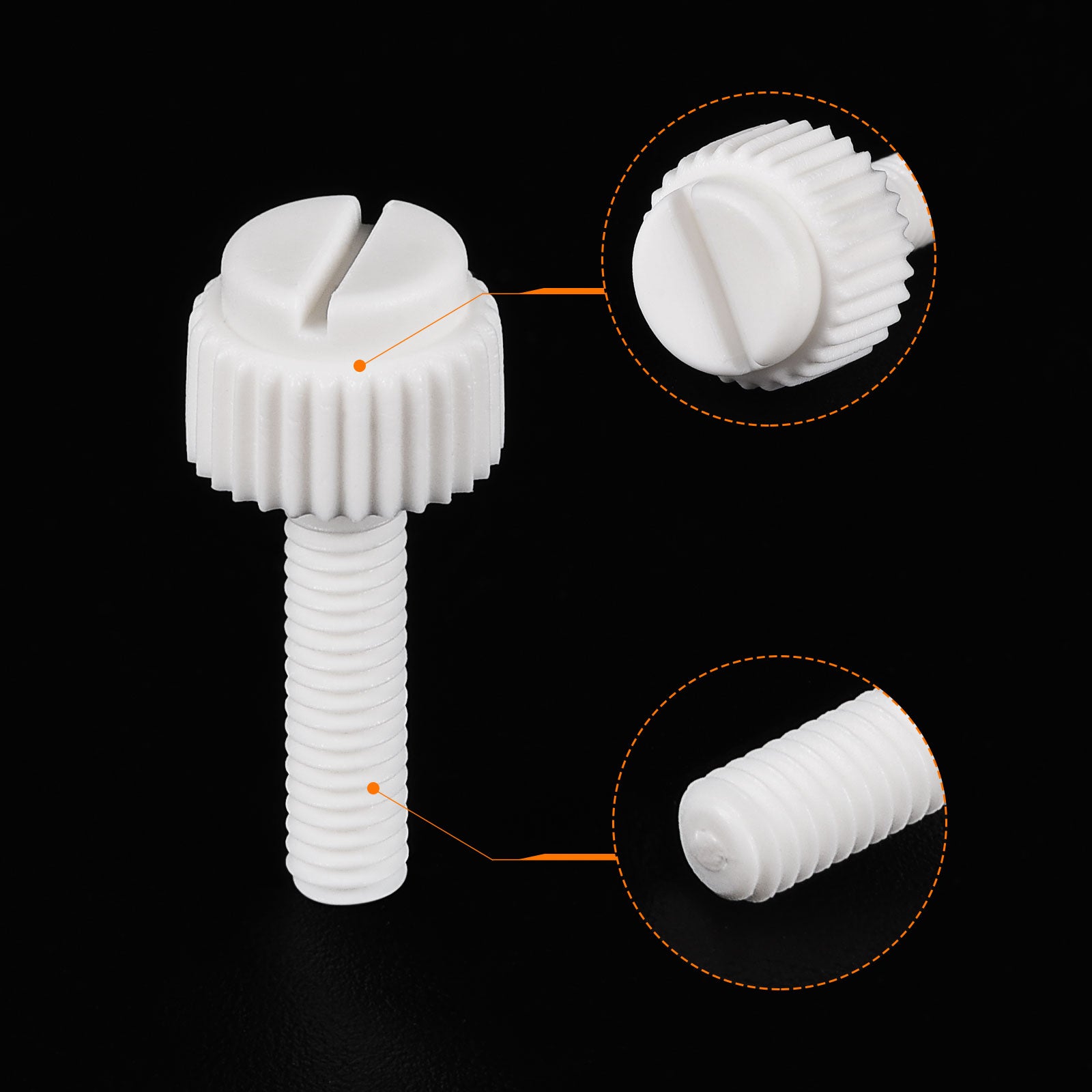 Specification: Color: White Material: PP Plastic Thread Size: M5x35mm Thread Pitch: 0.8mm/ 0.03" Drive Type: Slotted Drive Head Style: Slotted Knurled Head Screw Head Size: 10.2 x7.88mm/ 0.4" x0.31"(D*T)