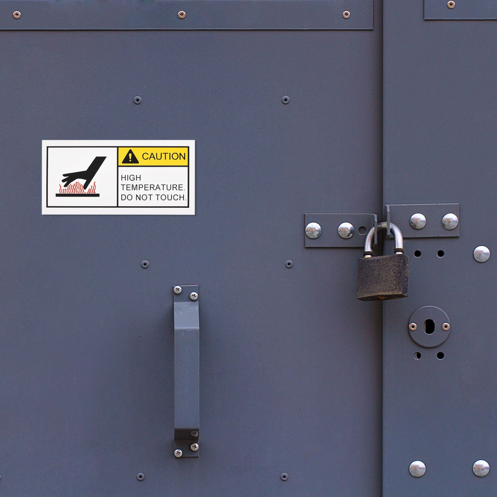 What is this? Small-sized high temperature warning sign to indicate the danger of high temperature on Surface,with words "caution,high temperature do not touch"