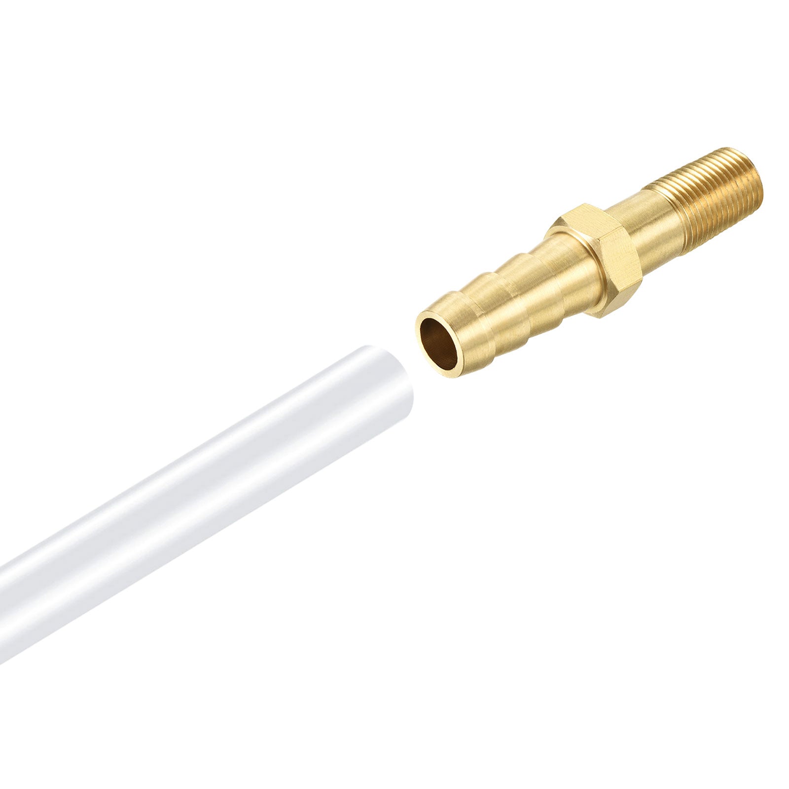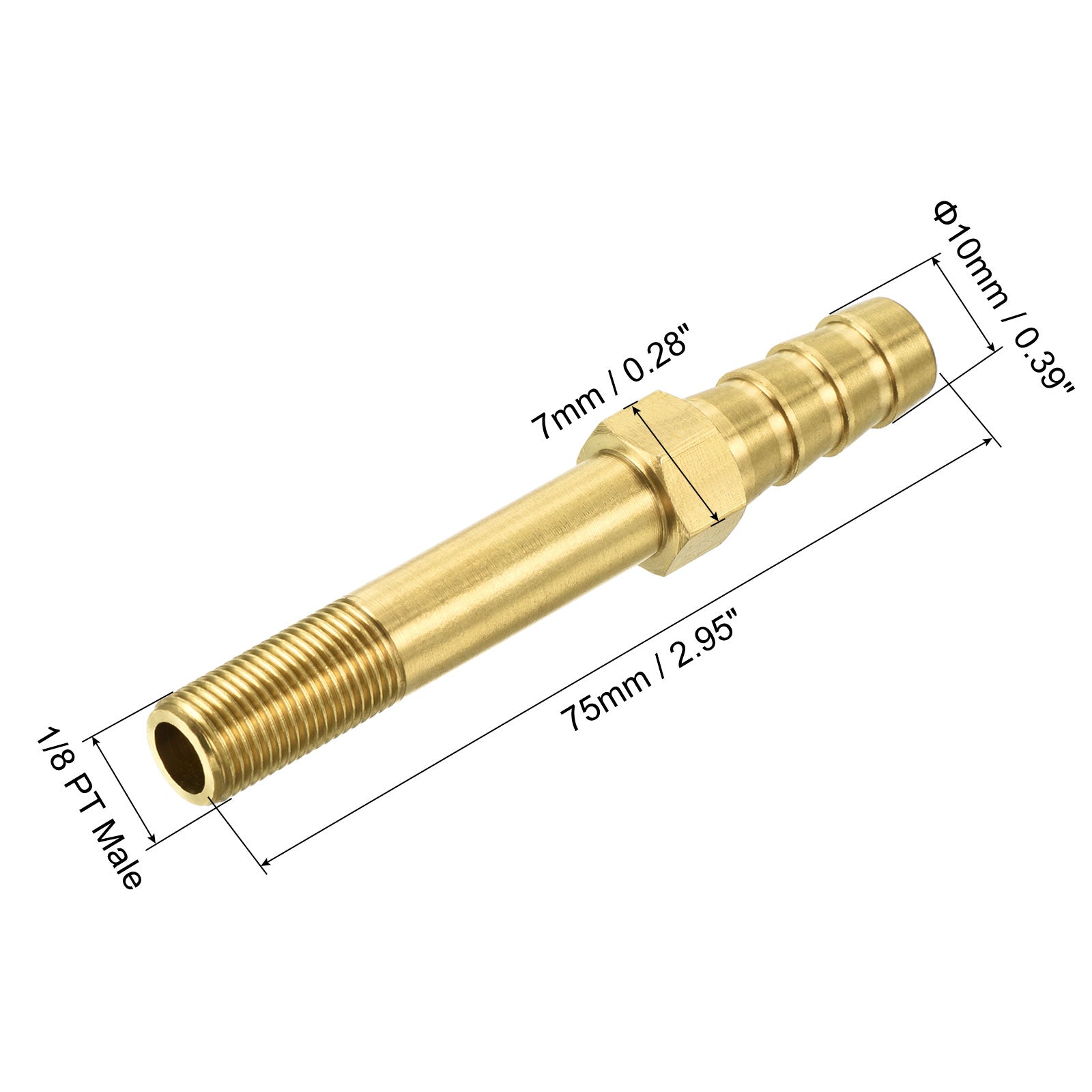 What will I get? Color: Gold Fitting Shape: Straight Material: Brass Thread Size: 1/8 PT Male Barb Outer Diameter: 10mm / 0.39 inch Overall Size: 50x7mm / 1.97x0.28 inch (L*Hex. W) Package Content: 1 x Barbed Coupler