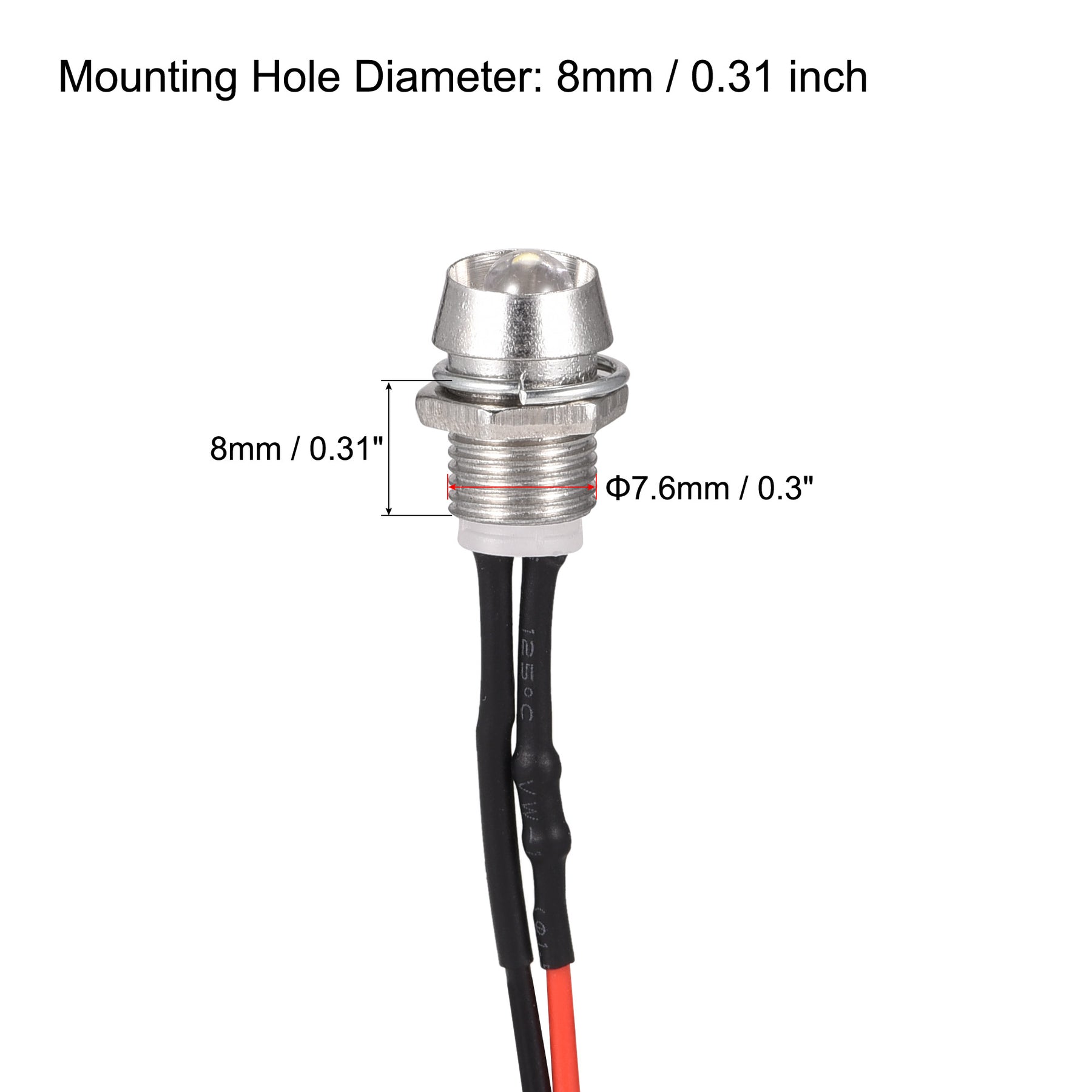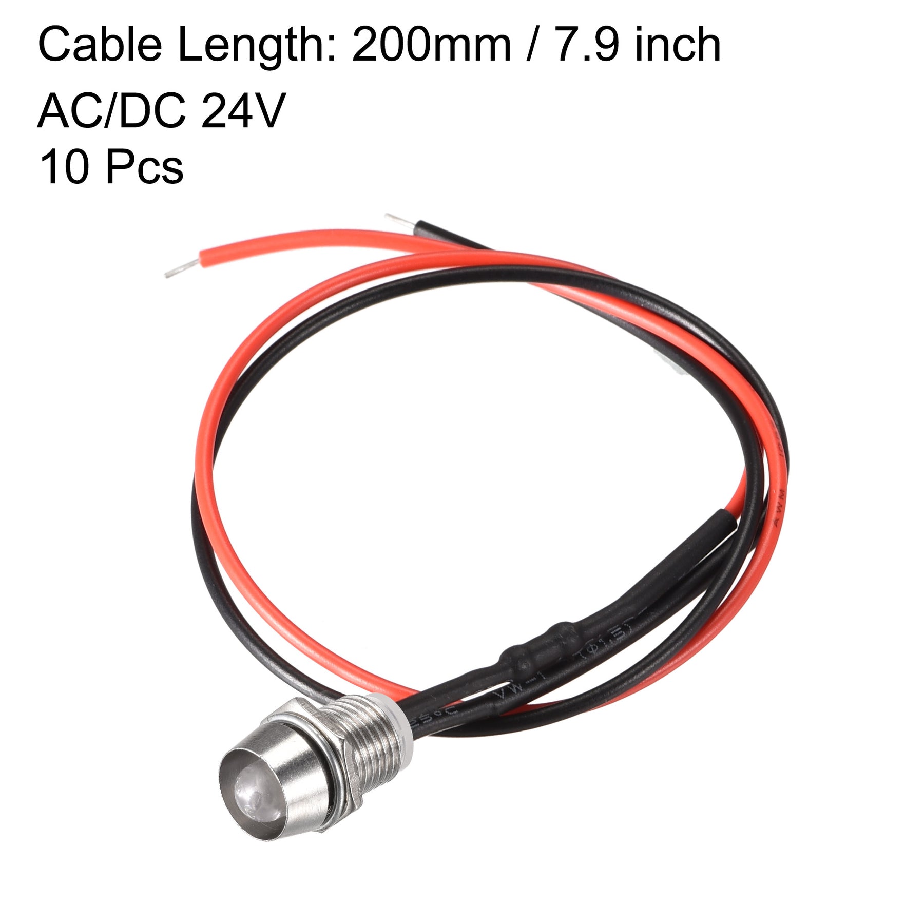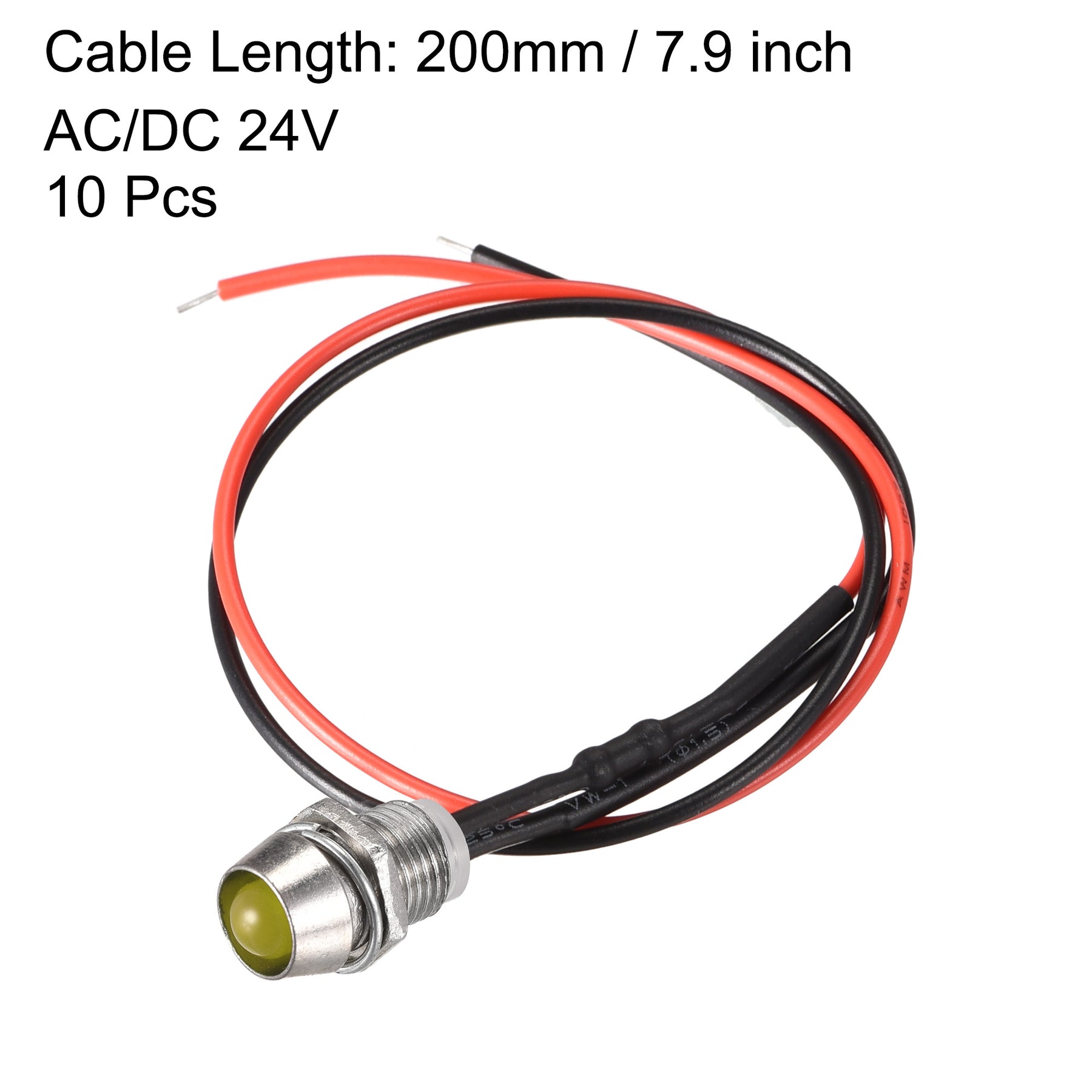 Specifications: Material: Plastic, Zinc Alloy Light Color: Yellow Rated Voltage: AC/DC 24V Mounting Hole Diameter: 8mm / 0.31 inch Thread Diameter: 7.6mm / 0.3 inch Thread Length: 8mm / 0.31 inch Cable Length: 200mm / 7.9 inch