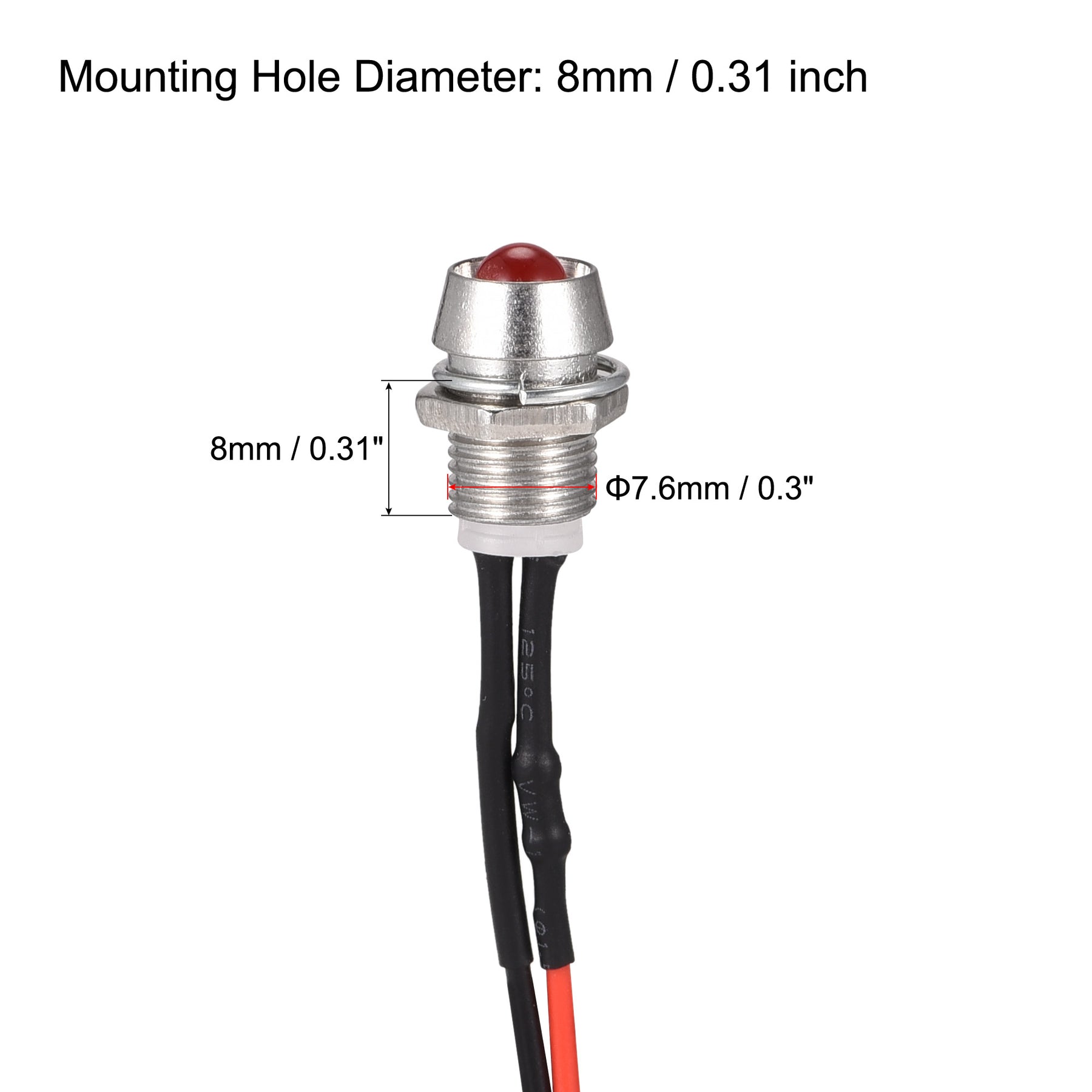 Features: Simply drill a hole and install with nut and washer. Panel mount for easy connection and strong conductivity. Energy saving and low maintenance cost. Impact resistance, corrosion resistance, vibration resistance. These panel mount indicator lights are suitable for replacement of signal lights, and also the working status display of household appliances, switch valves, industrial equipment, etc.
