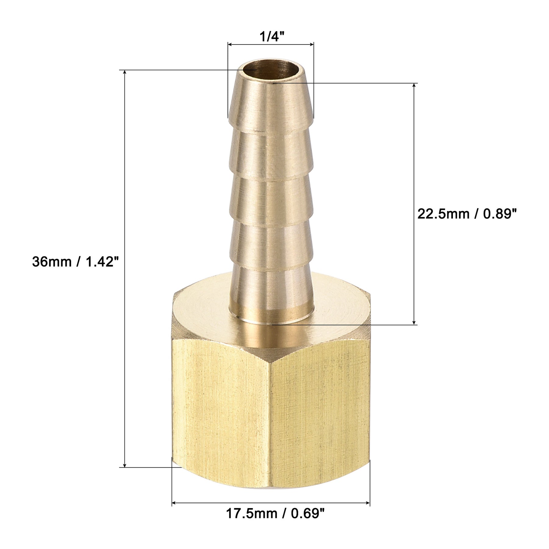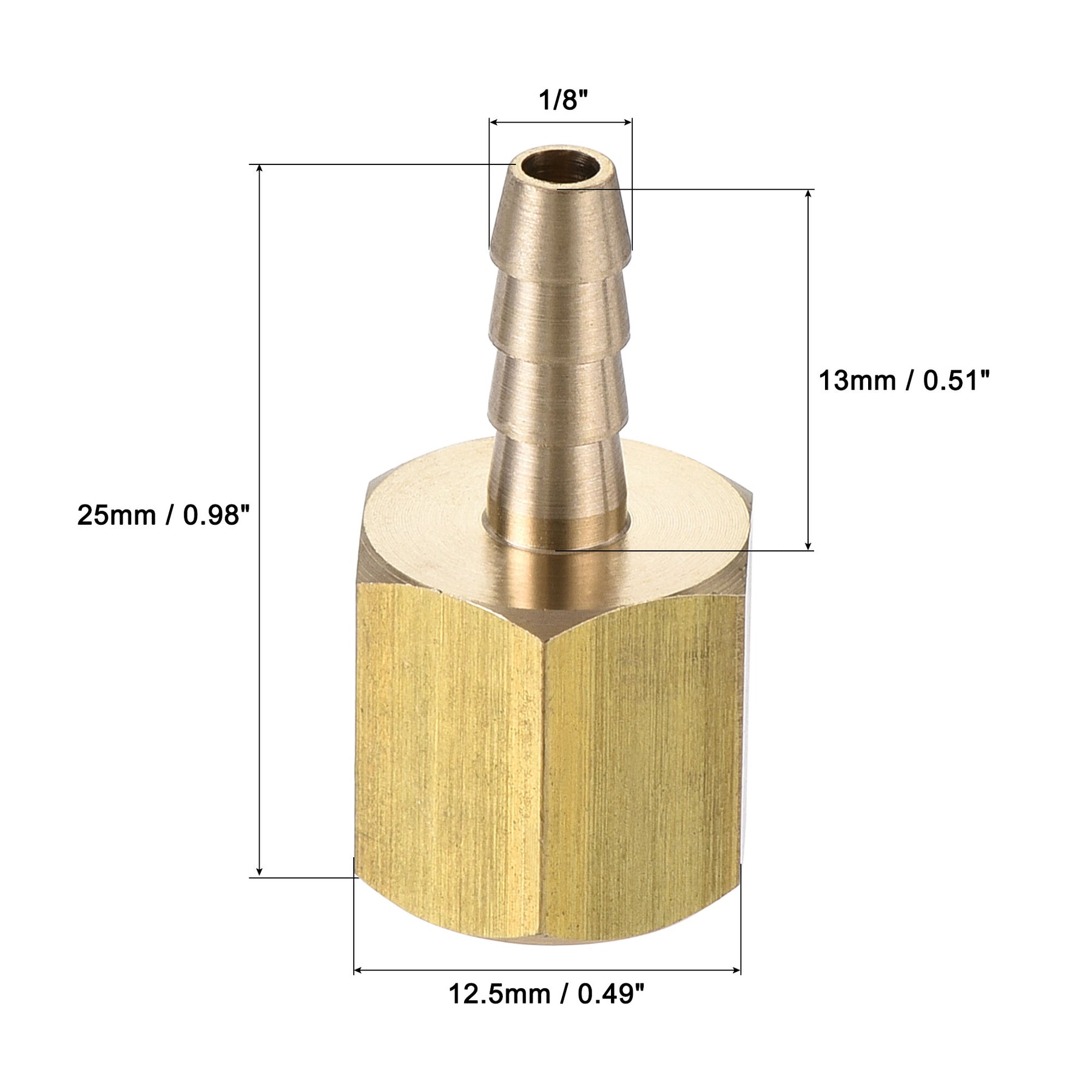 Specifications: Color: Golden Material: Brass Fitting Shape: Straight Thread Size: 1/8NPT Female Barb Outer Diameter: 1/4 inch Barb Length: 22.5mm / 0.89 inch Overall Size: 35mm x 12.5mm / 1.38 x 0.49 inch (L*W)