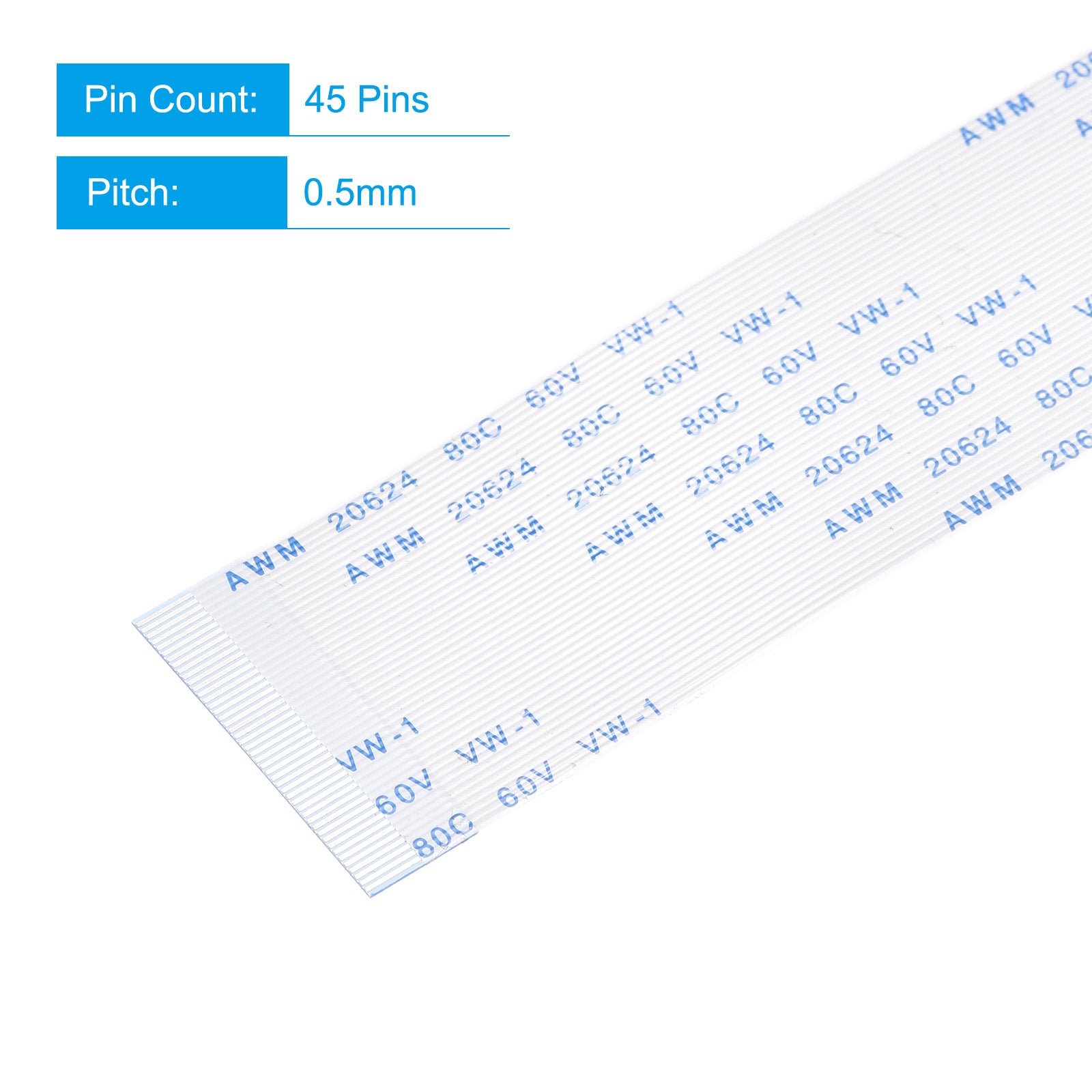 Cable: Pin on the Opposite Side (B Type); Pin Count: 45 Pins; Pitch: 0.5mm; Length*Width: 100mm x 23mm / 3.94" x 0.91"; In the package of: 5 x FFC Cable.