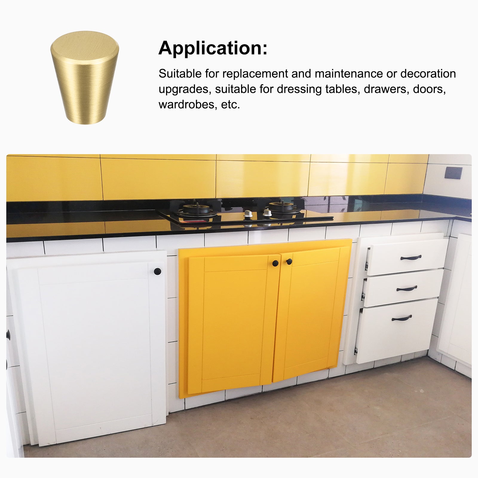 • Product Name: Drawer Knobs; Color: Gold Tone; Base Diameter: 10mm / 0.39"; Total Size: 15 x 17mm / 0.59"x 0.67"(Max. W*H); Screw Size: M4 x 25mm, M4 x 40mm