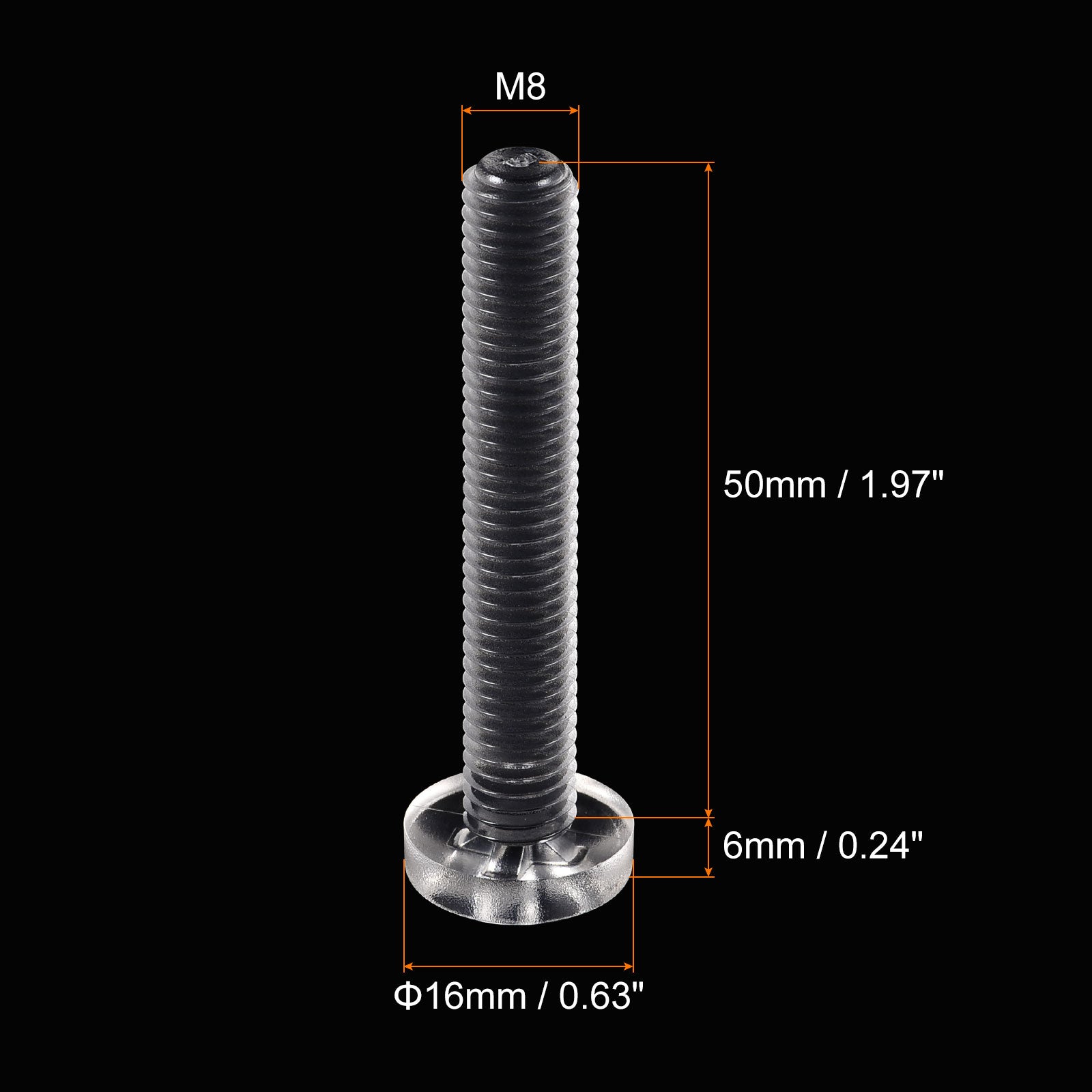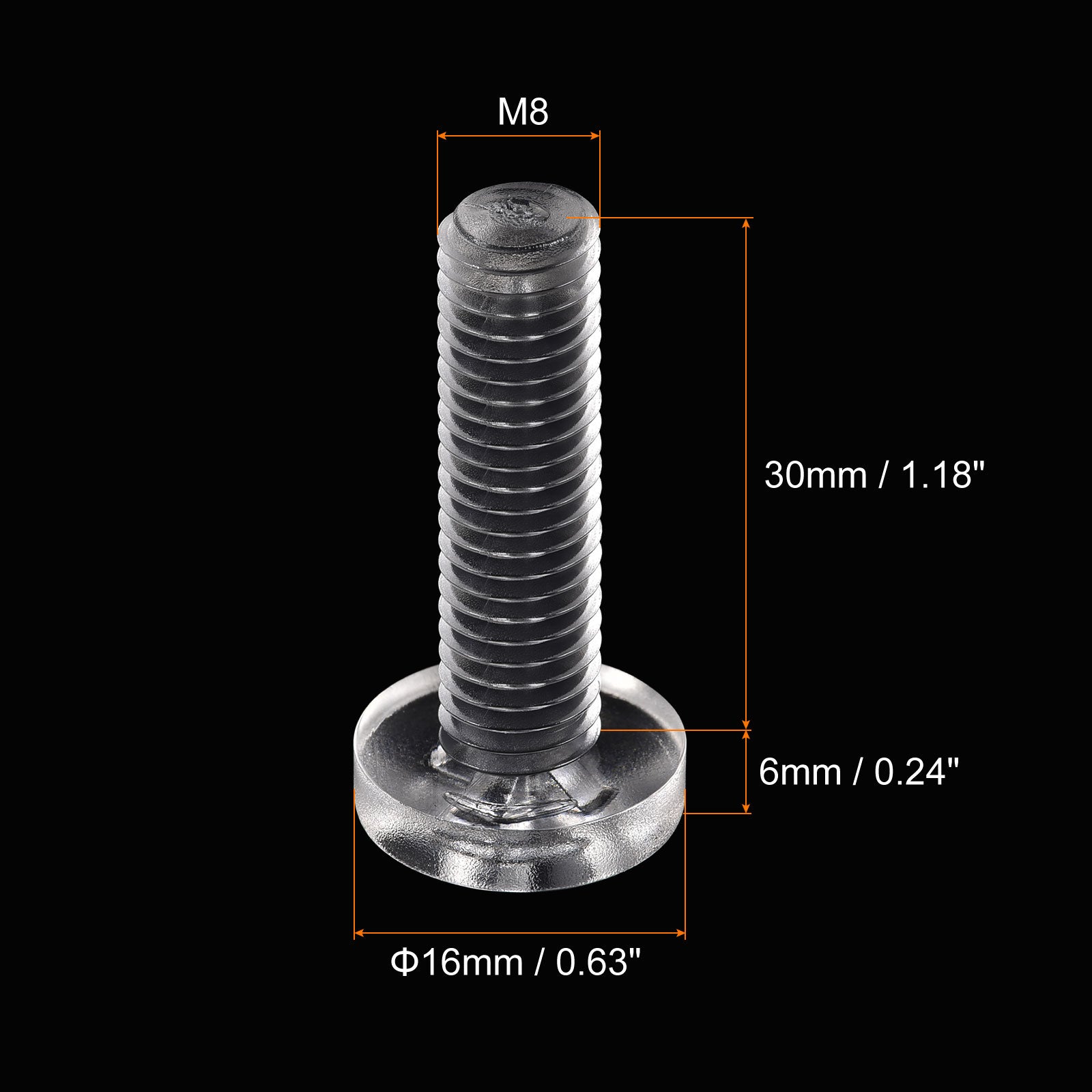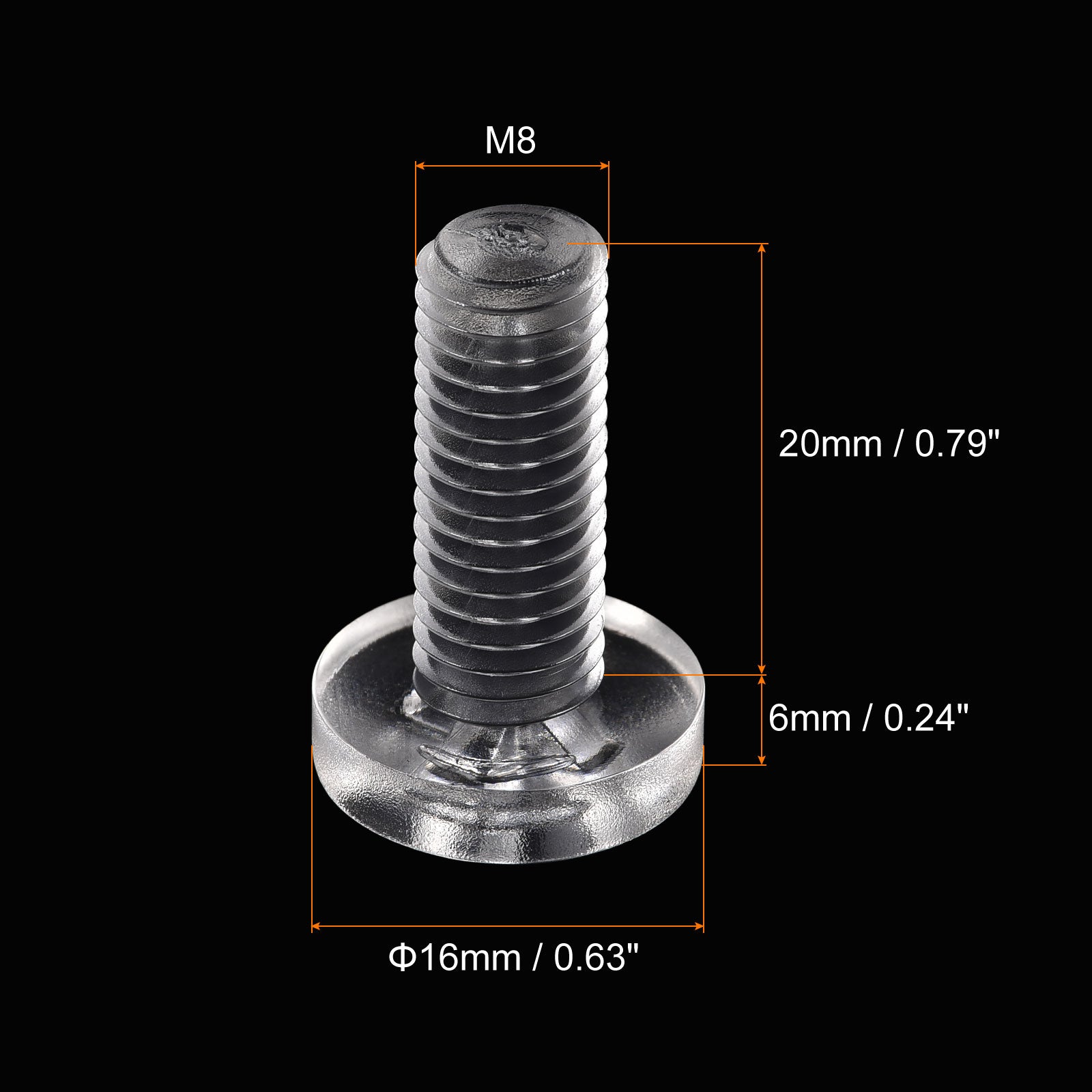 Specification: Product Name: Machine Screws Screw Groove Type: Phillips Material: PC Color: Transparent Model: M8 x 35mm Screw Length: 35mm / 1.38" Pitch: 1.25mm / 0.049" Screw Head Size: 16 x 6mm / 0.63" x 0.24"(D*T)