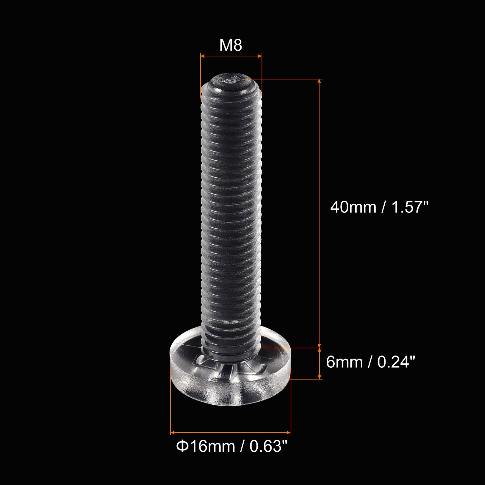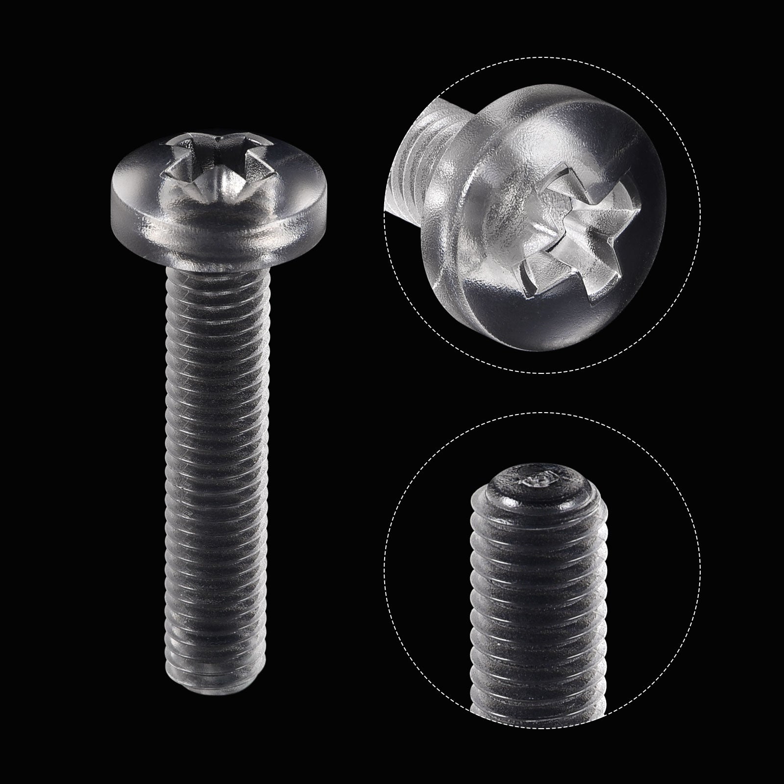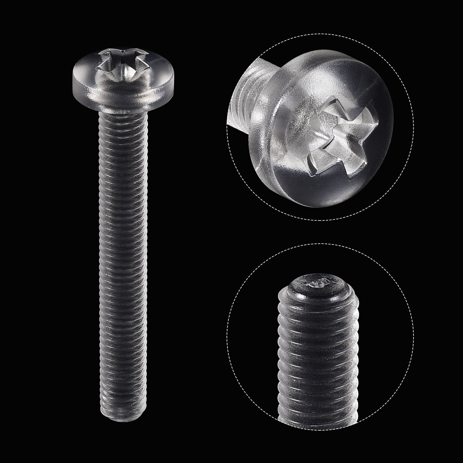 Specification: Product Name: Machine Screws Screw Groove Type: Phillips Material: PC Color: Transparent Model: M8 x 35mm Screw Length: 35mm / 1.38" Pitch: 1.25mm / 0.049" Screw Head Size: 16 x 6mm / 0.63" x 0.24"(D*T)