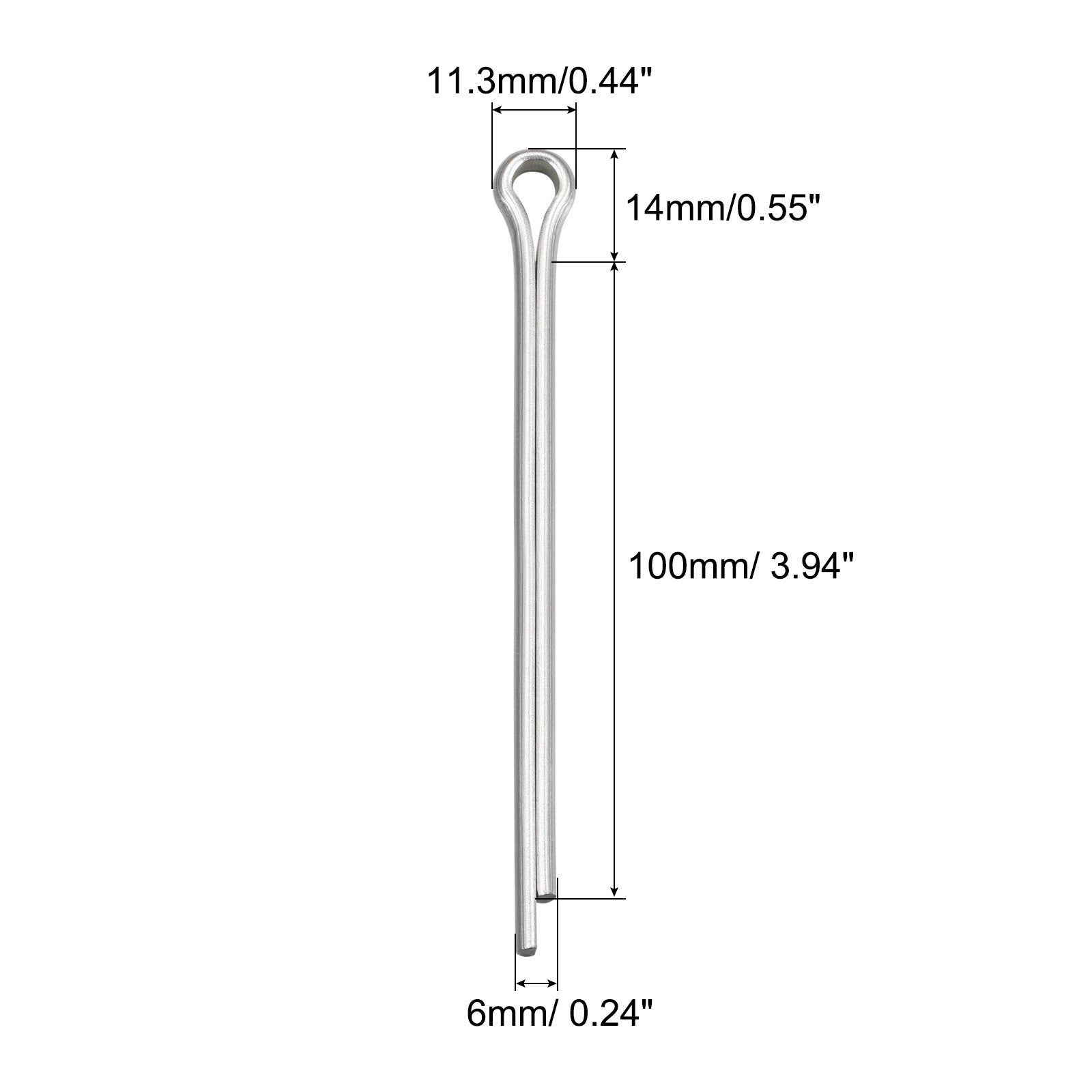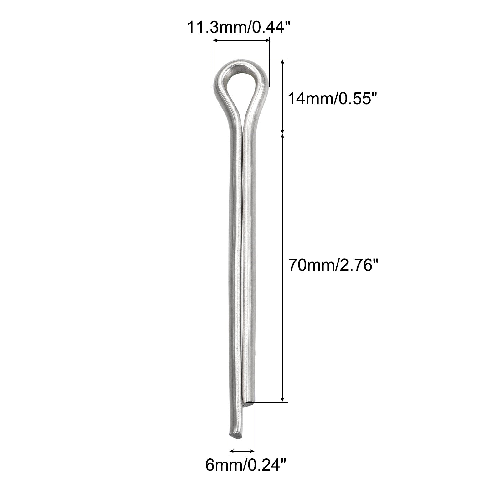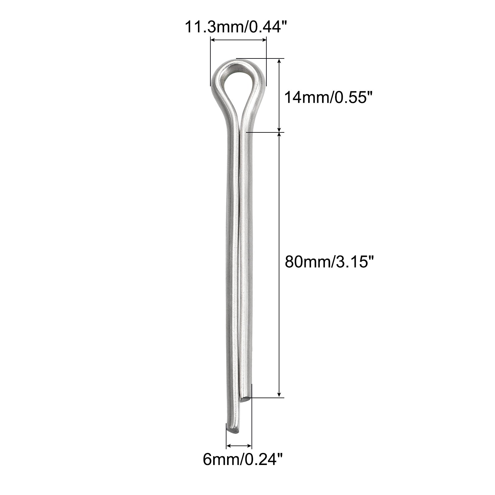 Specifications: Color: Silver Tone Material: Stainless Steel Cotter Pin Diameter: 6mm/0.24 inch Cotter Pin Length(Short): 80mm/3.15 inch Head Size: 11.3 x 14mm/ 0.44 x 0.55 inch(D*L)