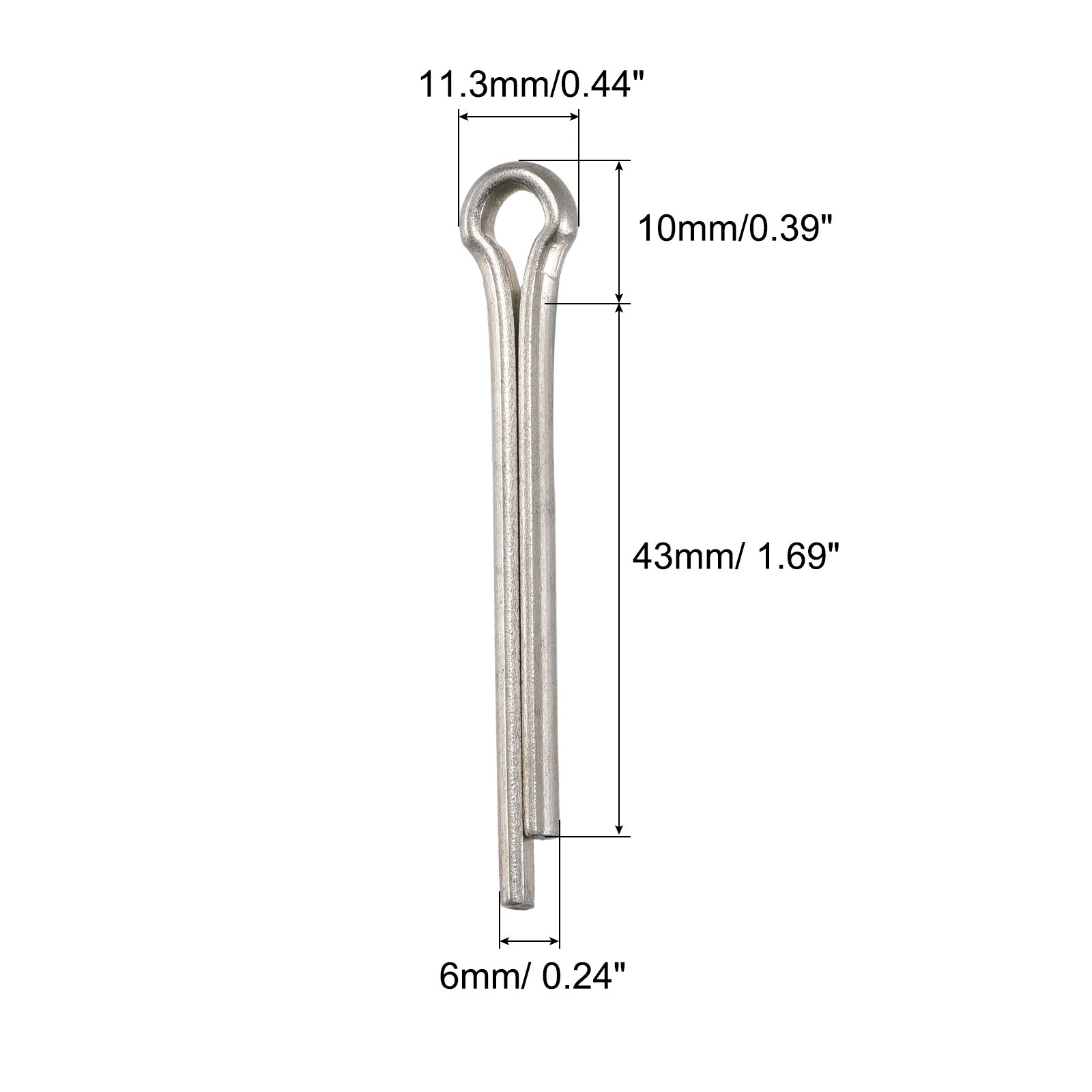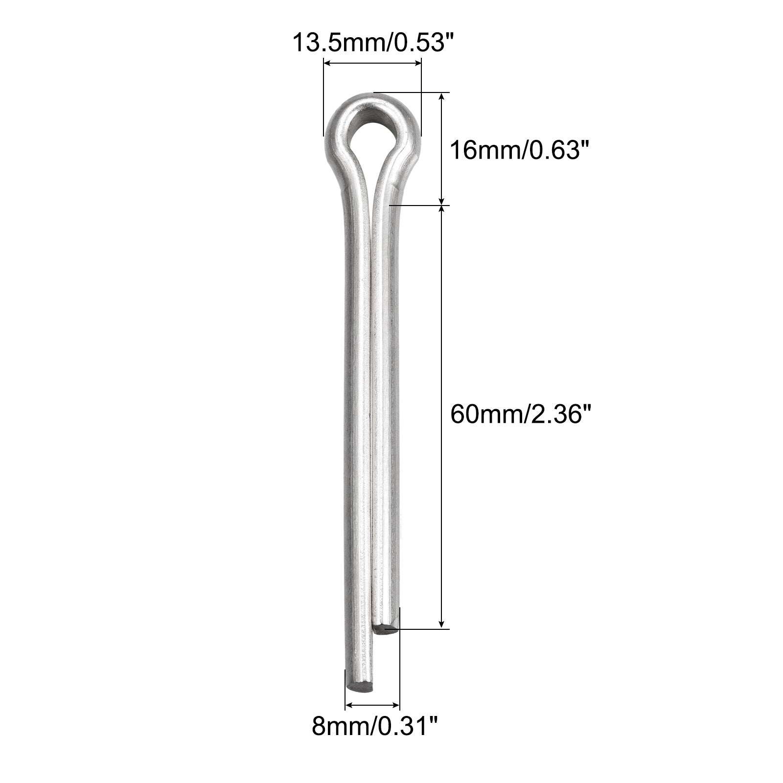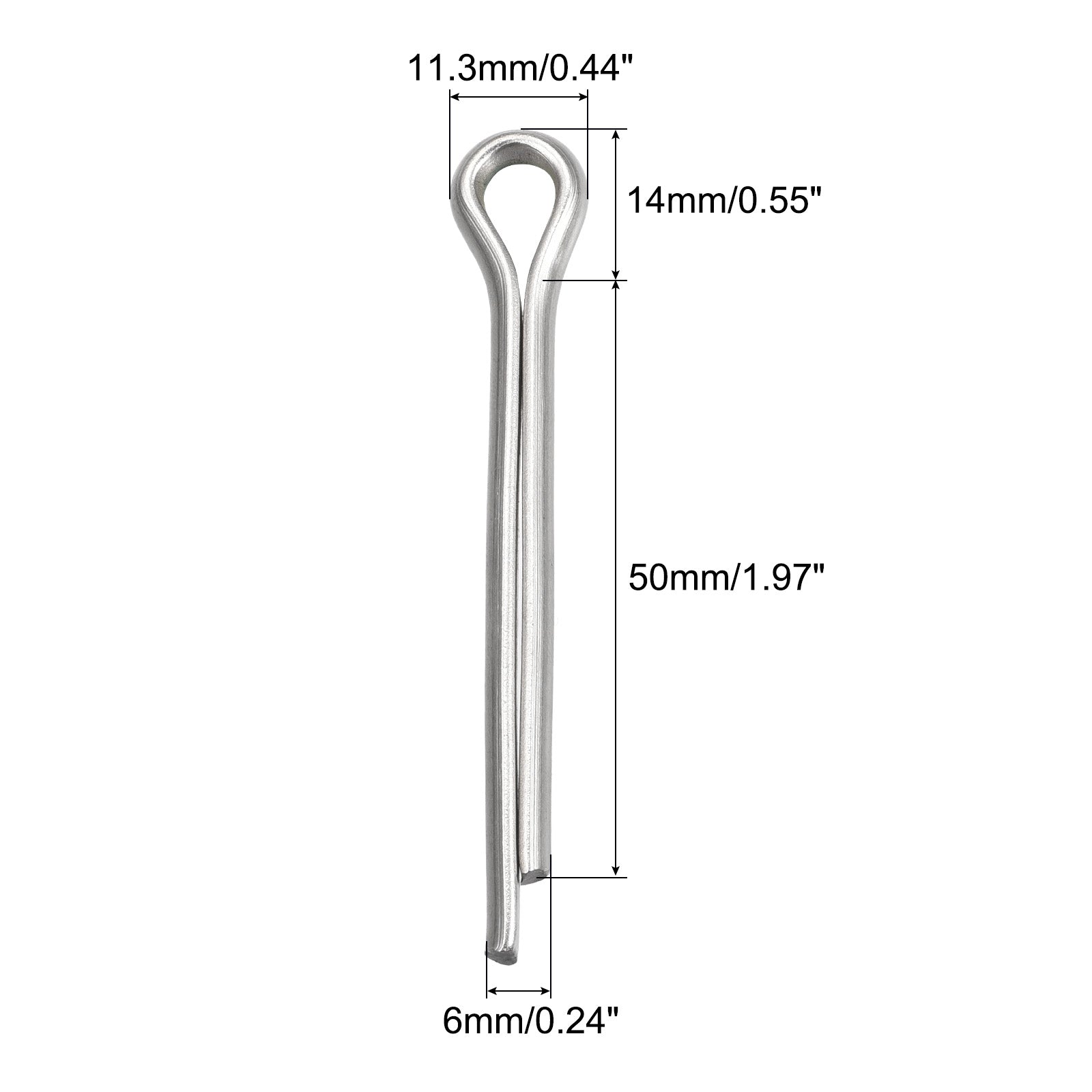 Specifications: Color: Silver Tone Material: Stainless Steel Cotter Pin Diameter: 6mm/0.24 inch Cotter Pin Length(Short): 80mm/3.15 inch Head Size: 11.3 x 14mm/ 0.44 x 0.55 inch(D*L)