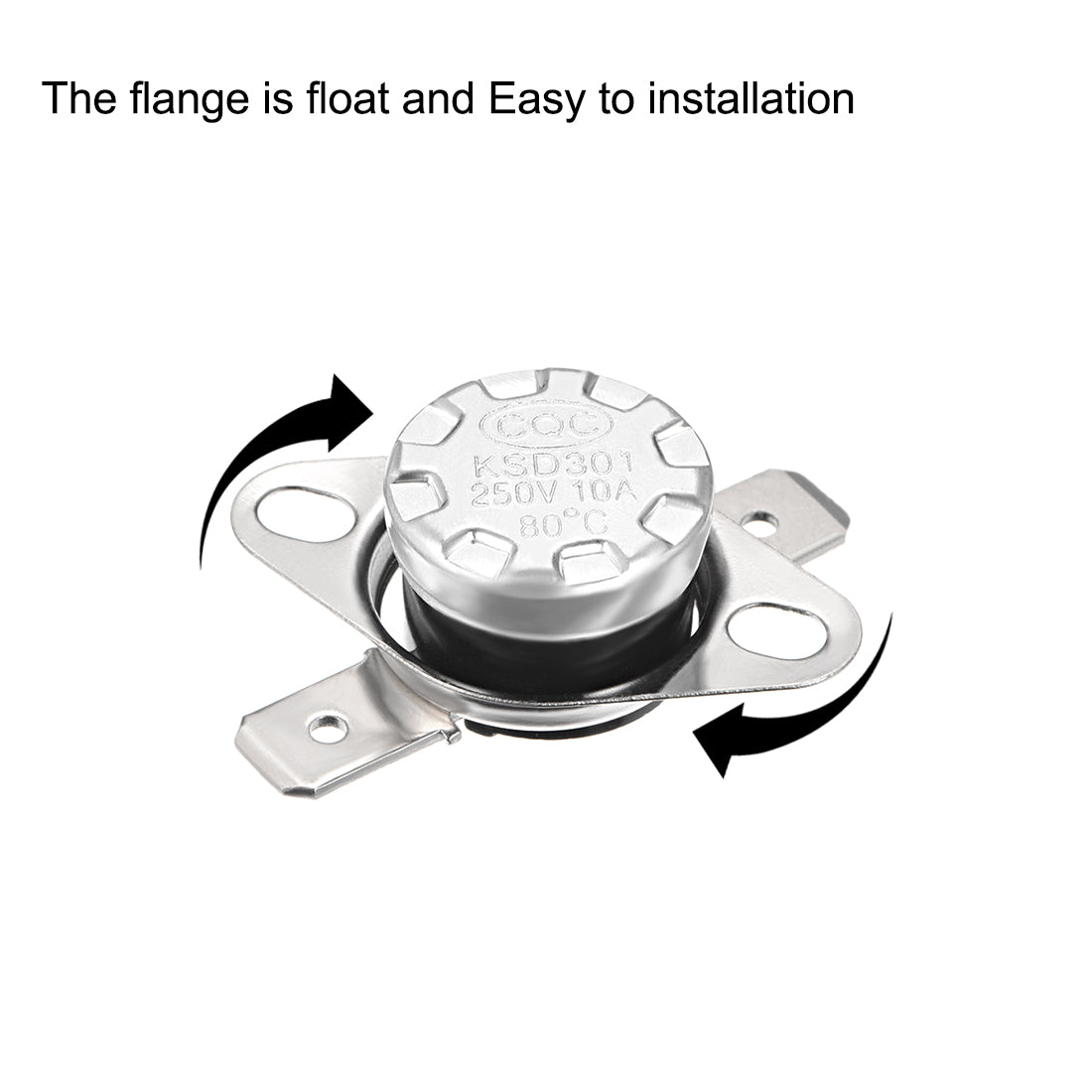 Uxcell Temperature Control Switch , Thermostat , KSD301 80°C , 10A , Normally Open N.O 6.3mm Pin 5pcs
