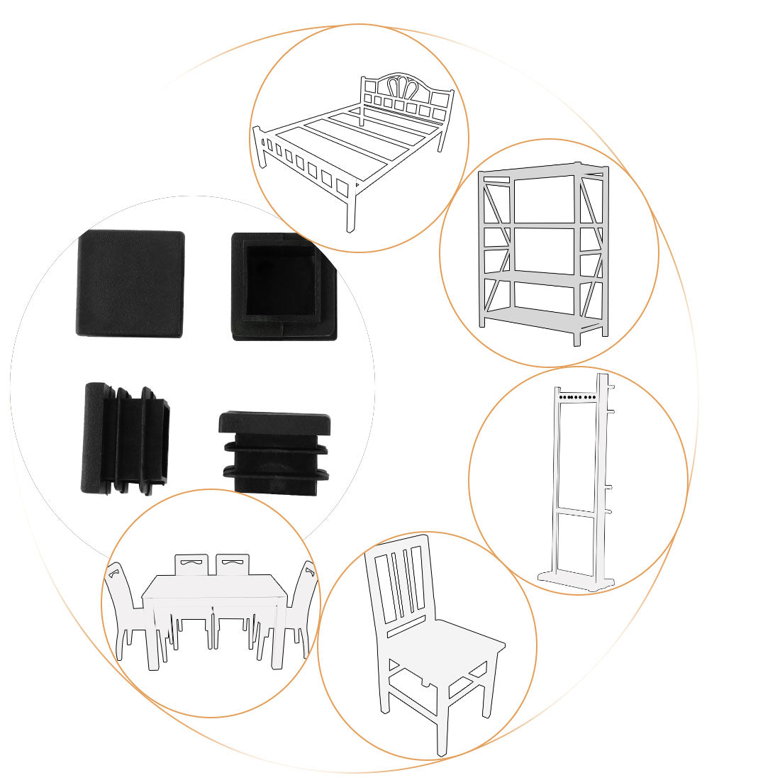 Offer a neat and safe finish to tube ends. Tube inserts can prevent dirt and dust ingress. Made of black plastic with ribs to secure. These tube inserts fit mounting size of furniture leg: length: 13-14.4mm.