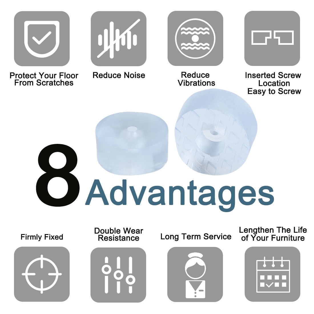 The rubber feet are used for furniture, chair, table, desk, closet, wardrobe, sofa, stool, coffee table, TV cabinets, bookshelf, flower shelf and so on.