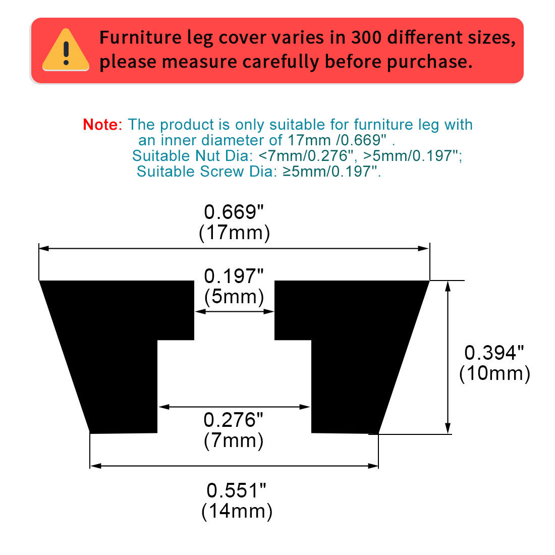 3. Please check your furniture leg dimension to fit the furniture feet cover before buying this item.