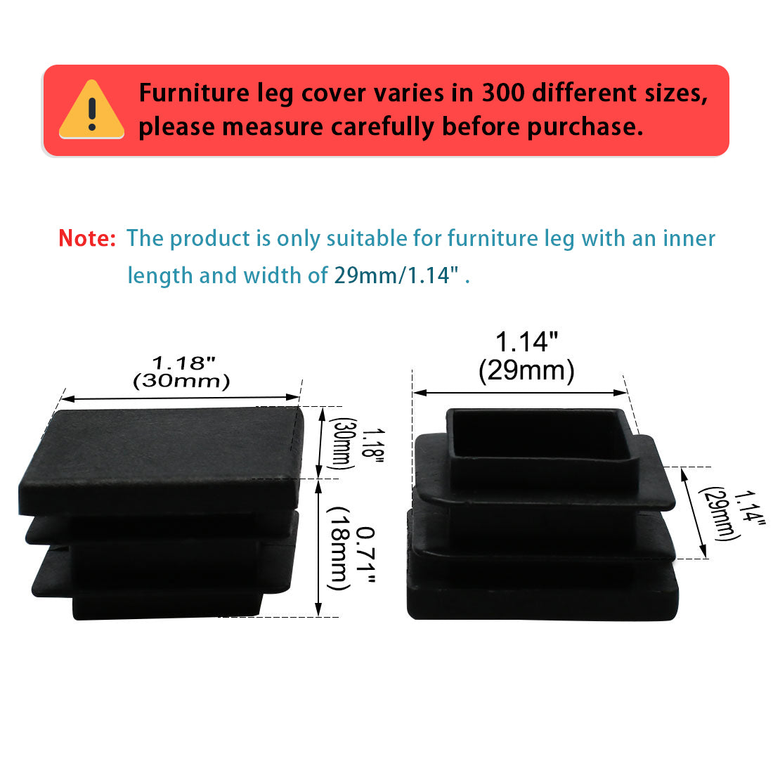 Feature: 1. Plastic tubing caps will satisfy with your product protection, finishing needs. 2. Multiple strong ribs for a secure fit, tube insert provides stability, provide longevity and strength to your furniture. 3. Tube caps include multiple horizontal ribs designed with built in flexibility for easy install and secure fit. 4. Preventing your floor from scratching by sharp metal legs. 5. Prevent dirt and moisture entering into offering a neat finish to tube ends, protecting the internal section of the application. 6. These strong protective tube inserts are great for tubular racks, covering sharp tubular ends, or anywhere a finished look is needed. Such as office and patio furniture, chair legs, table legs, walking sticks, ladders, shelves, metal stands, gym equipment, etc.