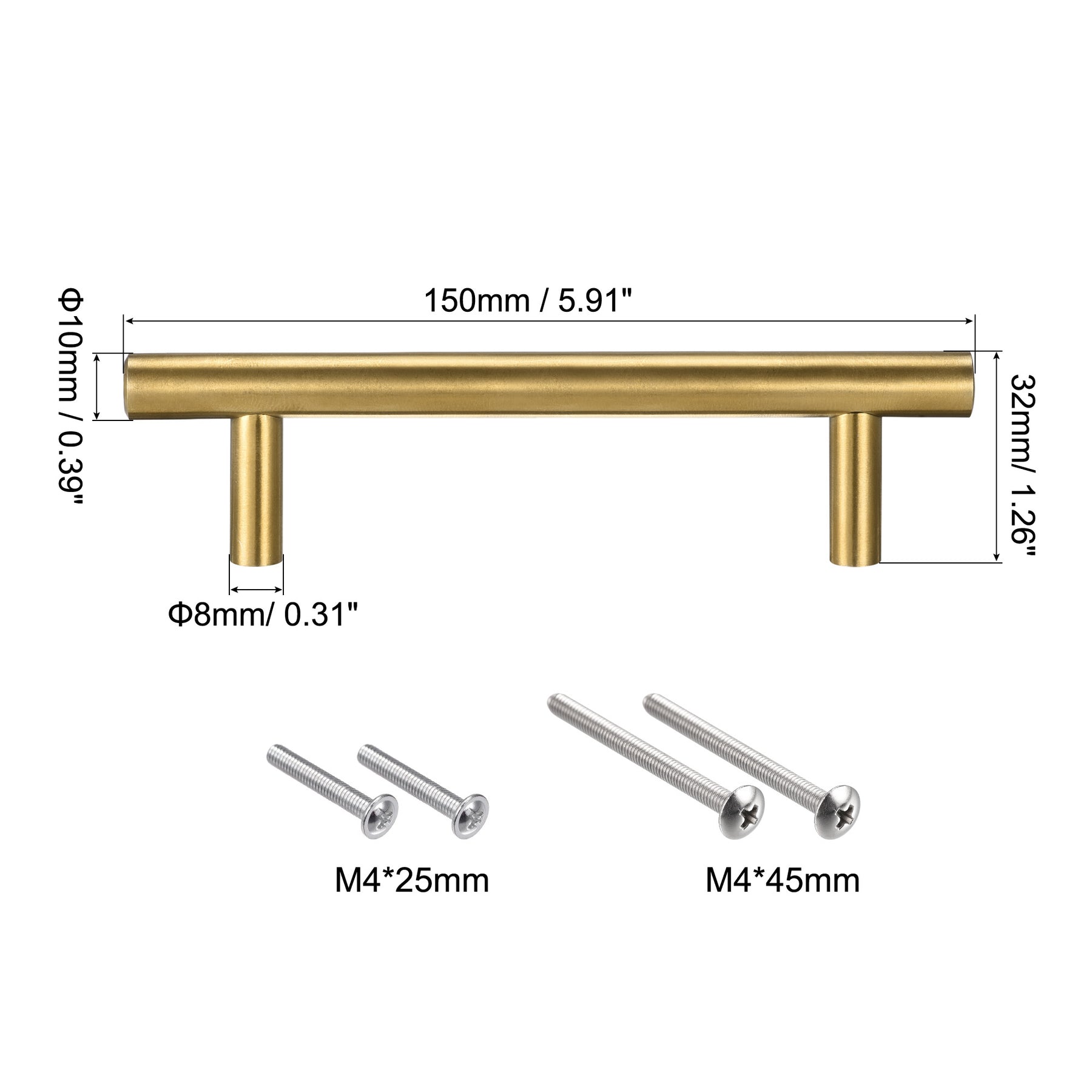 Specification: Material: Stainless Steel Finish: Electroplated Total Size: 150 x 32mm / 5.91" x 1.26"(L*H) T Bar Diameter: 10mm / 0.39" Base Diameter: 8mm/ 0.31" Mounting Hole Size: M4 Mounting Hole Center Distance: 96mm / 3.78" Package Content: 1 x T Bar Pull Handle; 2 x M4*25mm Screw; 2 x M4*45mm Screw