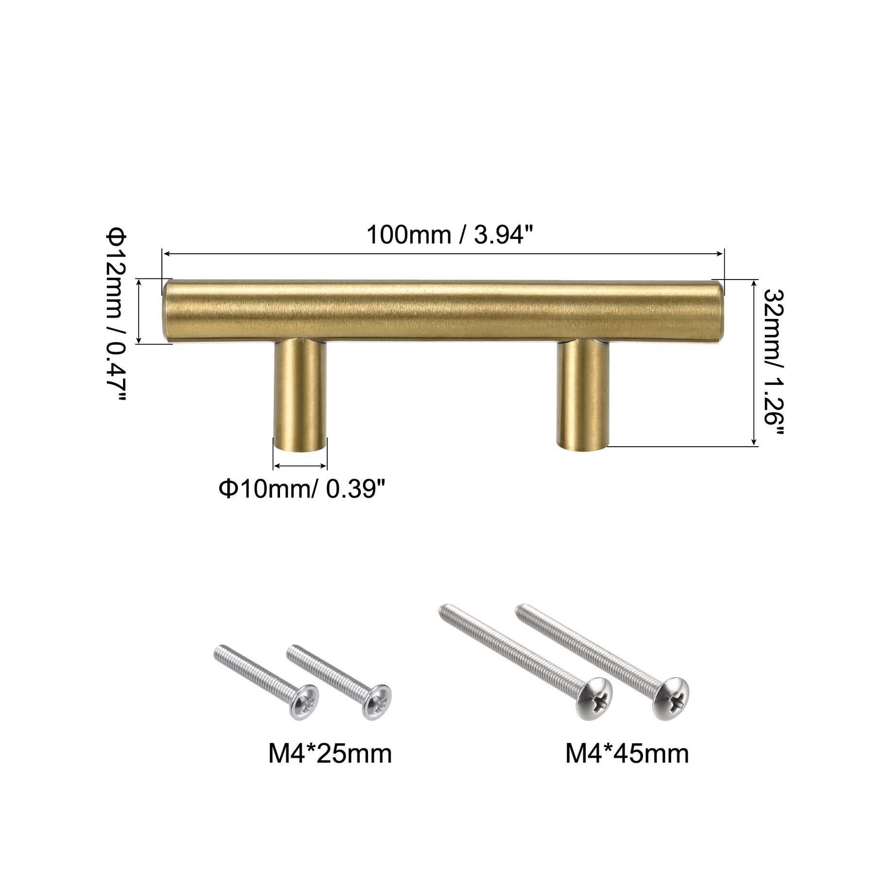 Specification: Material: Stainless Steel Finish: Electroplated Total Size: 100 x 32mm / 3.94" x 1.26"(L*H) T Bar Diameter: 12mm / 0.47" Base Diameter: 10mm/ 0.39" Mounting Hole Size: M4 Mounting Hole Center Distance: 64mm / 2.52" Package Content: 1 x T Bar Pull Handle; 2 x M4*25mm Screw; 2 x M4*45mm Screw