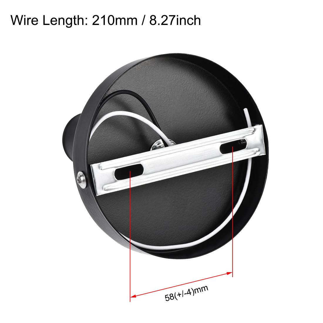 Specifications: Material: Metal,plastic Voltage: 100-250V Power: 250W Applicable Bulb Base Type: E14 Color: Black Wire Length:210mm/8.27inch Mounted Hole Distance:58(+/-4)mm Screw Thread: 25mm x 4mm/0.98inch x 0.16inch Base Size: Approx. 100mm x 20mm / 3.94inch x 0.79inch Total Height:108mm/4.25inch Package Weight: 251g