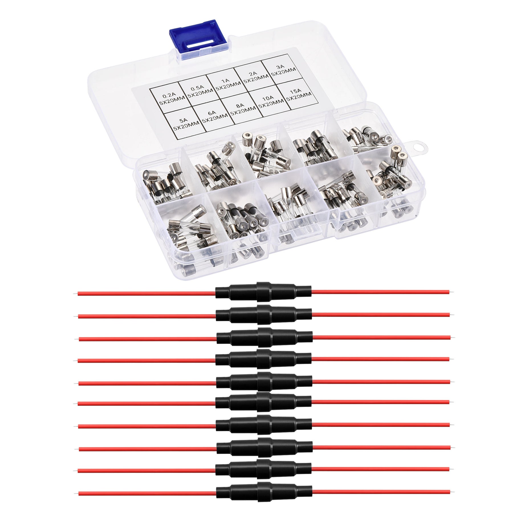 1 x Glass Fuses Kit (10 Value 100pcs, each Value 10pcs) and 10 pcs Wire