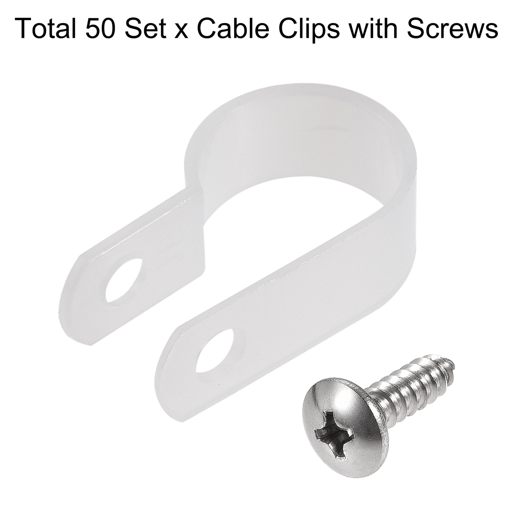 Specification: Material: Nylon Main Color: White Screw Size: M4x14mm(Thread Size*L) Labeled 16mm For Cable Diameter: 13.5mm Overall Size: 30.5mm x 9.5mm x 17mm(L*W*H) Package Content: Total 50 Set x Cable Clips with Screws