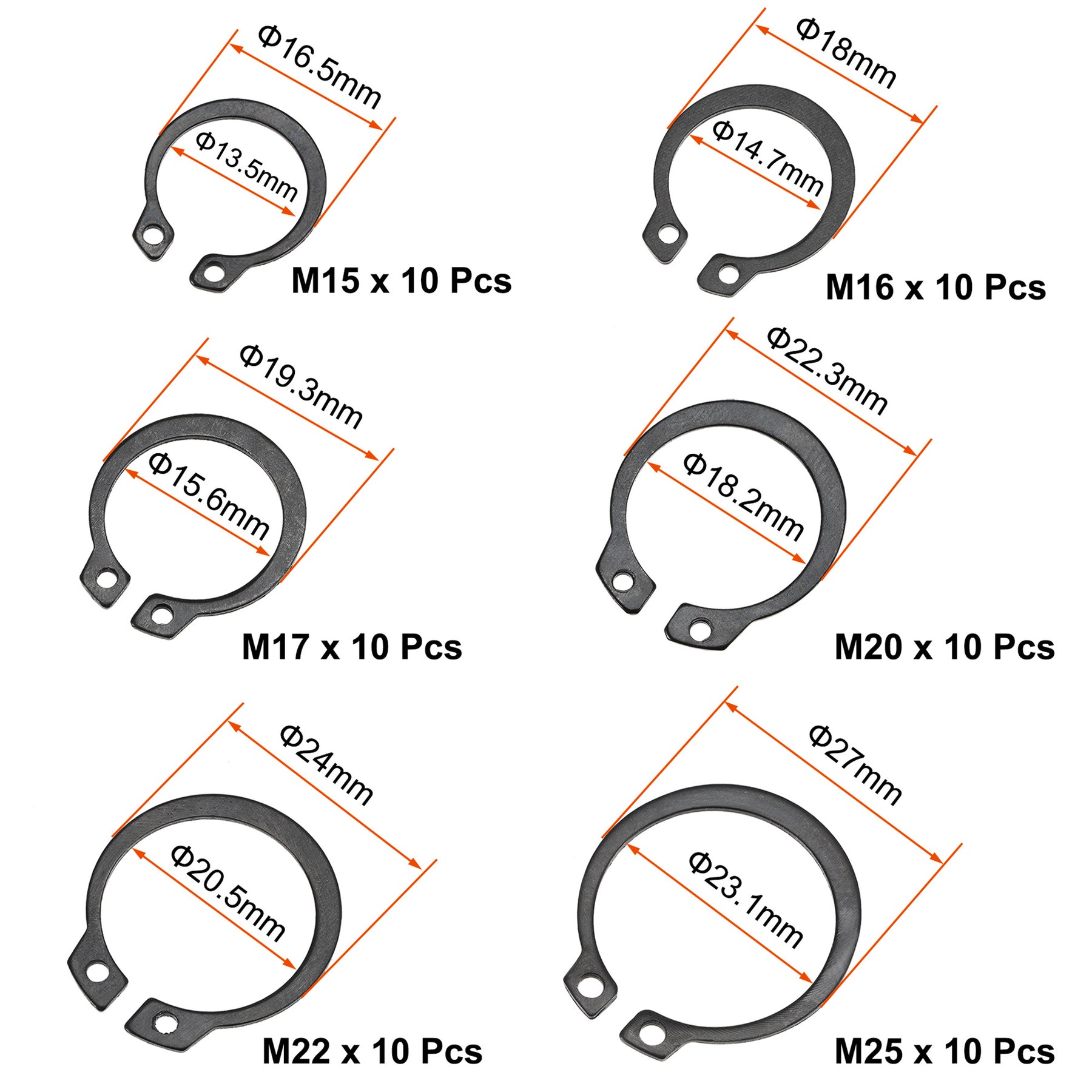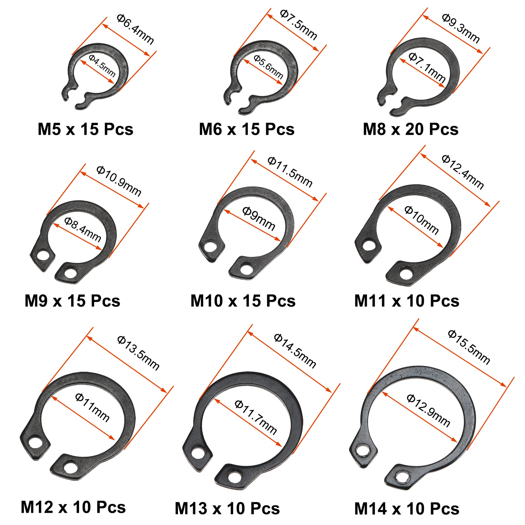 Specifications: Material: Carbon Steel Color: Black Sizes: (ID x OD x Thickness) <1> 5mm ------ 4.5 x 6.4 x 0.5mm <2> 6mm ------ 5.6 x 7.5 x 0.5mm <3> 8mm ------ 7.1 x 9.3 x 0.7mm <4> 9mm ------ 8.4 x 10.9 x 0.7mm <5> 10mm ------ 9 x 11.5 x 1mm <6> 11mm ------ 10 x 12.4 x 1mm <7> 12mm ------ 11 x 13.5 x 1mm <8> 13mm ------ 11.7 x 14.5 x 1mm <9> 14mm ------ 12.9 x 15.5 x 1mm <10> 15mm -------- 13.5 x 16.5 x 1mm <11> 16mm ------ 14.7 x 18 x 1mm <12> 17mm ------ 15.6 x 19.3 x 1mm <13> 20mm ------ 18.2 x 22.3 x 1mm <14> 22mm ------ 20.5 x 24 x 1mm <15> 25mm ------ 23.1 x 27 x 1.1mm