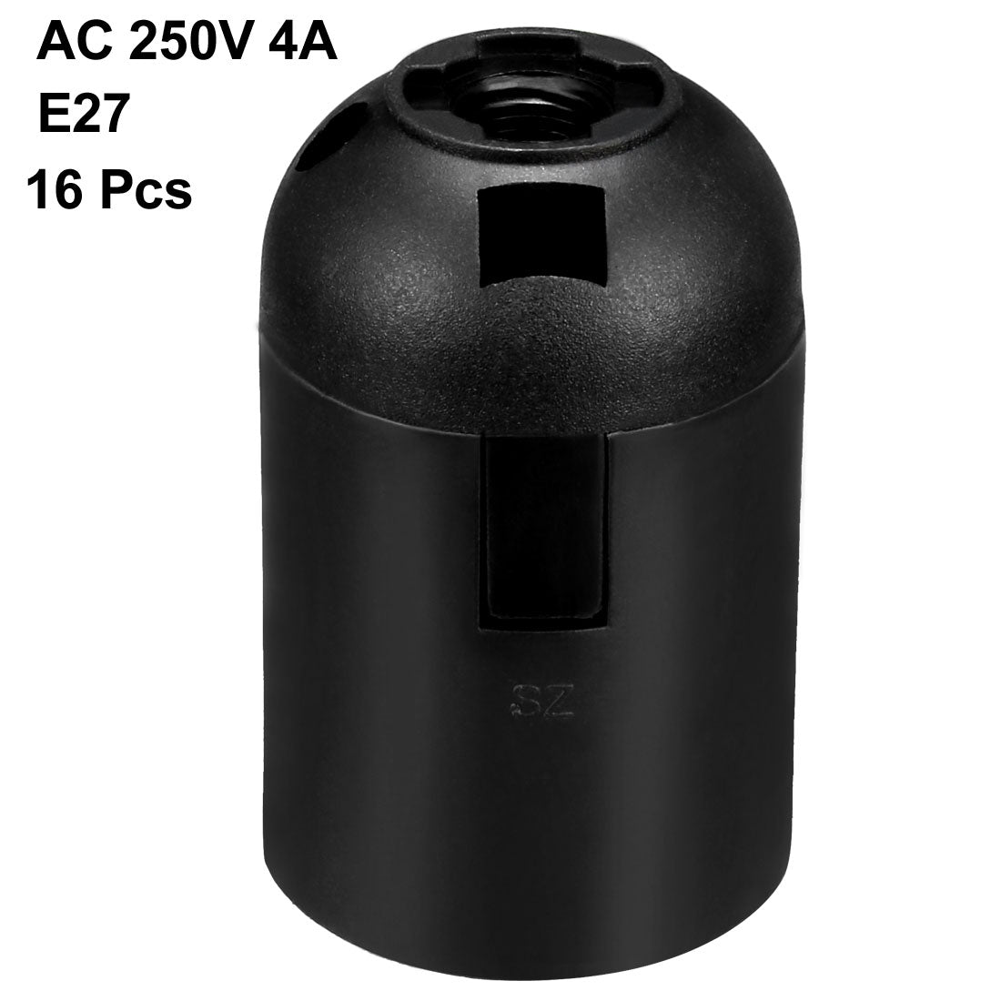 16Pcs 4A E27 Light Socket Screw Bulb Retro Pendant LED Lamp Holder Without Switch Plastic Black for DIY Projects