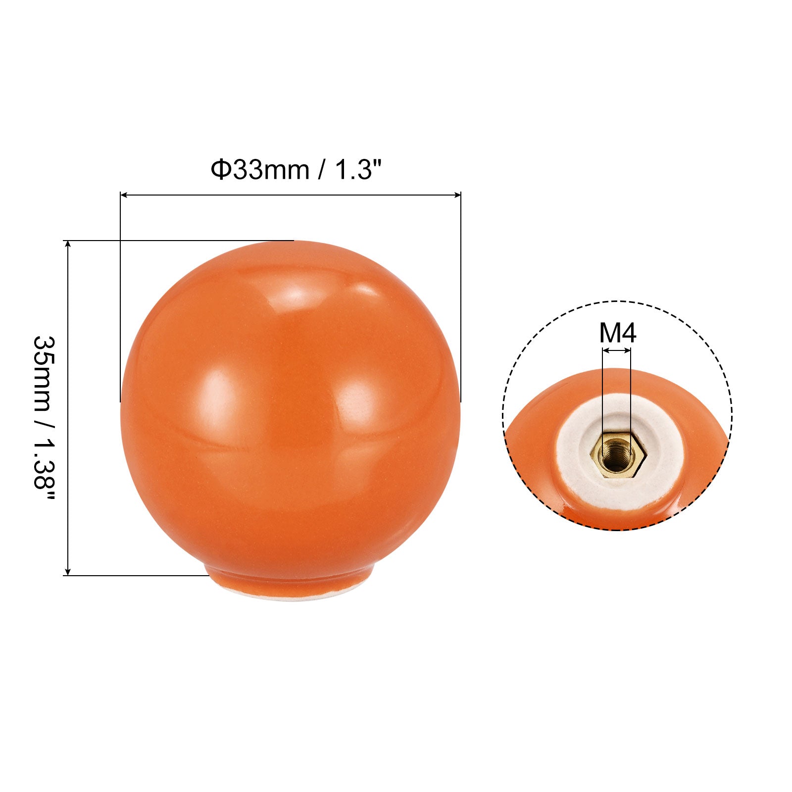 • Product Name: Ceramic Drawer Knobs; Knobs Material: Ceramic; Knobs Finish: Polished; Screw Material: 304 Stainless Steel; Color: Orange; Total Size: 33 x 35mm / 1.3"x 1.38"(Max. W*H); Screw Size: M4 x 25mm, M4 x 40mm